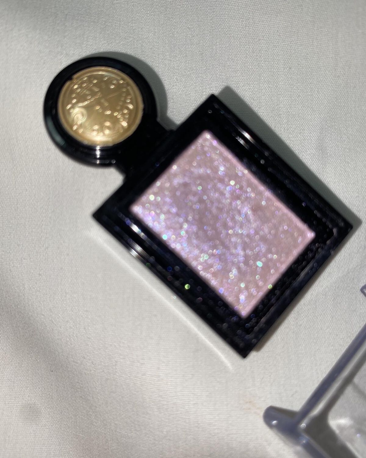 開封した時、あまりの可愛さにやはりコスメは魔法だったかと再認識したコスメ。 つけたときの目元の華やかさと、時間が経っても取れない密着力に驚いた。 どのグリッターもそれぞれ違う顔をしていて、見ているだけでも飽きない。部屋に置いてあるだけでもかなり楽しいアイシャドウパレット。 このパレットは紫をベースとした色味になっているので、グリッターを多少多めにつけても、上品さ、綺麗さを保てる所がこのパレットの最大の魅力。透明感が瞼を飾ってくれる。 ブルベ冬の私には少しくすみが強いかと感じていたが、抜け感があるので唇をメインにメイクしたい時に良いバランスになる。 お気に入りではあるが使用頻度は少なめ。 しかし本当に可愛いパレット。夢とときめきが詰まってる。気分の上がり方が違う。コスメはやはり魔法。
