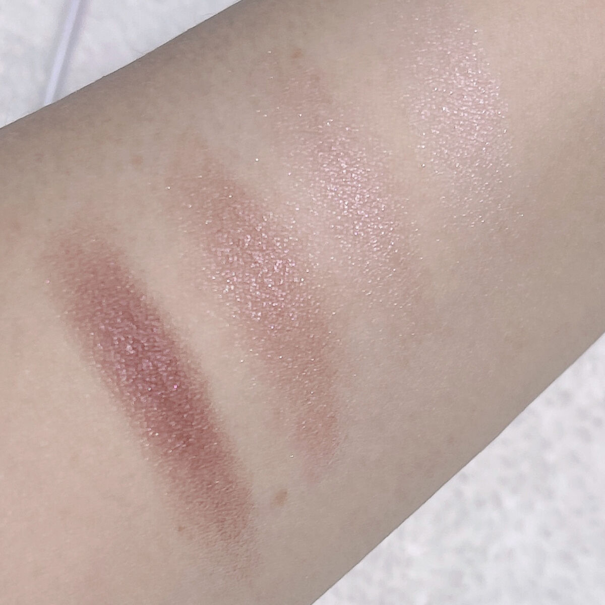 塗布した感じだと、パレットで見るよりかは発色は控えめなので肌馴染みがよくラメが細かくツヤ感も出してくれます︎👍🏻 ̖́- 凛とした雰囲気だけど何処かエレガンスな雰囲気もある仕上がりになる印象です。 グリーンとブラウンの組み合わせって思ってたけど、今までと違う雰囲気の目元になるので買って正解でした👏🏻 ̖́- ピンクに発色するというよりかは、光り輝く透明感やツヤ感を演出してくれます👍🏻 ̖́- クリーム系だからベタつきやヨレたり気になるところでしたが、実際に塗布してみると伸びもよくサラッとしていてベタつきもきになりませんでした。 ギラギラせず馴染んでくれて、綺麗な透明感とツヤ感が最高に好みでした✨ それに資生堂のメデューサピンクに似てる気はするけど、使用感とか比べてもメデューサよりコッチがの好みかもしれな🫰🏻 このナチュラルなツヤ感たまりません🫶🏻🤍 ̖́-