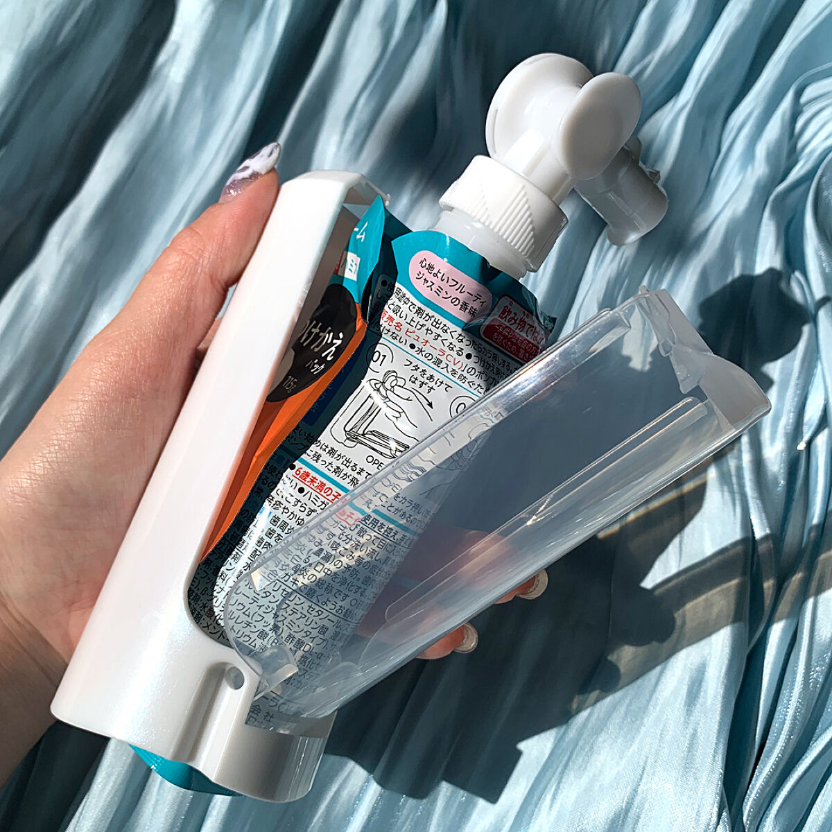クリームで磨く新感覚はみがき粉 歯もハグキもぴったり密着してくれる濃密なねっとりクリームタイプ 泡立たないからじっくり磨ける さらにボトルがポンプタイプになっているから片手で歯磨き粉が出せるのが便利すぎた ケースがついてるからしっかり自立もできて詰め替えも簡単なのも嬉しいポイント