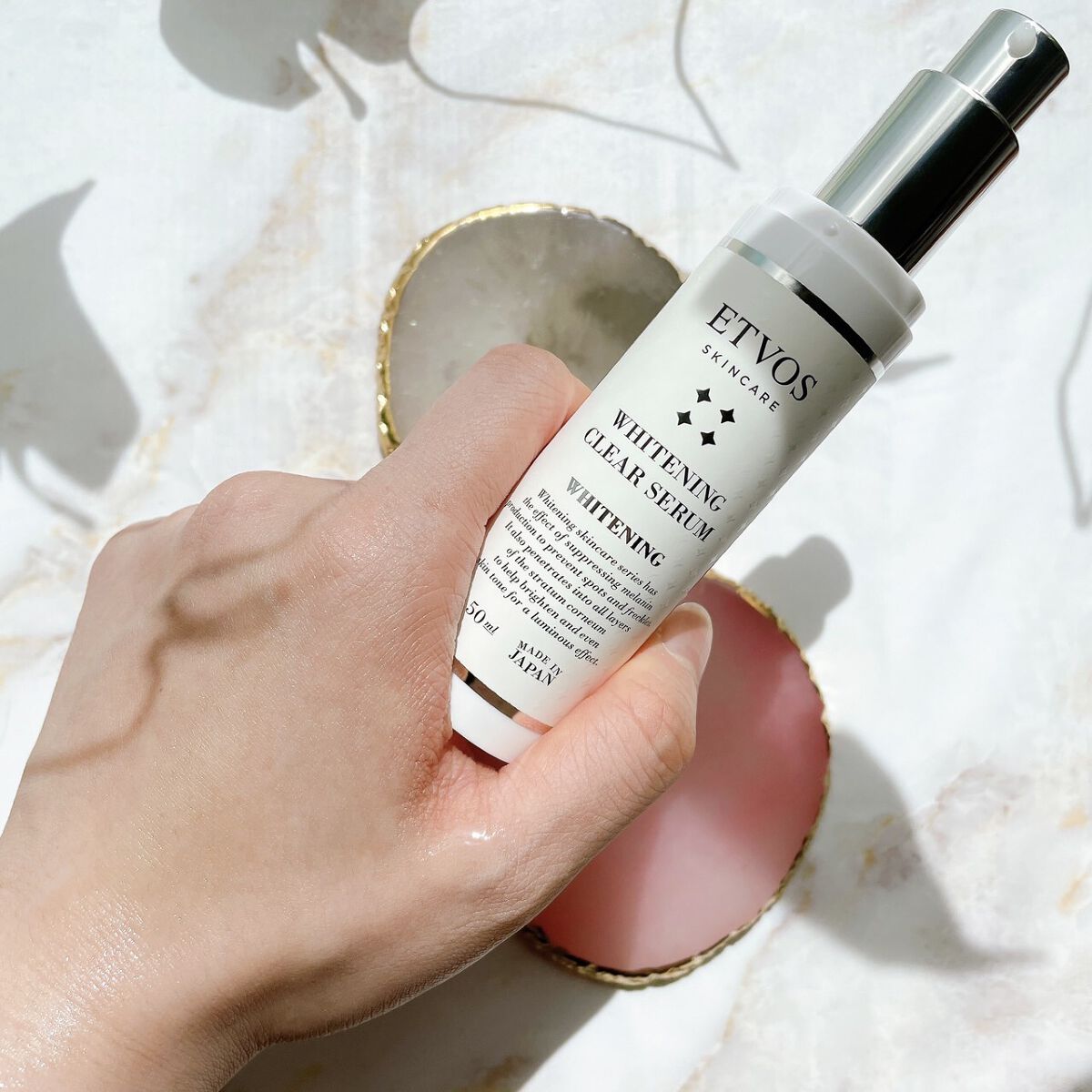 ETVOSの美白美容液がLDKのベスコスに選ばれました!敏感肌でもそうでなくても使ってほしい!美白*¹と保湿の両方を叶えちゃいます! ホワイトニングクリアは美白*¹と保湿の両方をケア。大人の肌には美白*¹も必要。 使用感がホワイトニングクリアのほうがさらっと軽くさっぱり。なのに、うるおい感は変わらずしっかりで