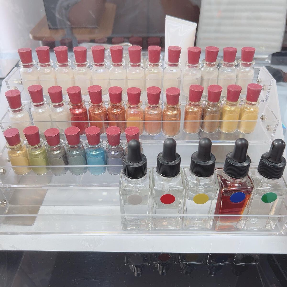 定番の17を愛用していて、こちらはパケもカラーも可愛くて情報解禁した時に即決🥰 予約日の1番に予約しに行きました🎵 表面のキラキラは吹付なので既にとれてしまいましたが、とにかく見た目が可愛いしアイシャドウの仕込みに使っても可愛いとのこと😍 見る度に幸せな気分にさせてくれます🩷 たくさん使ってあげたいなぁ💓