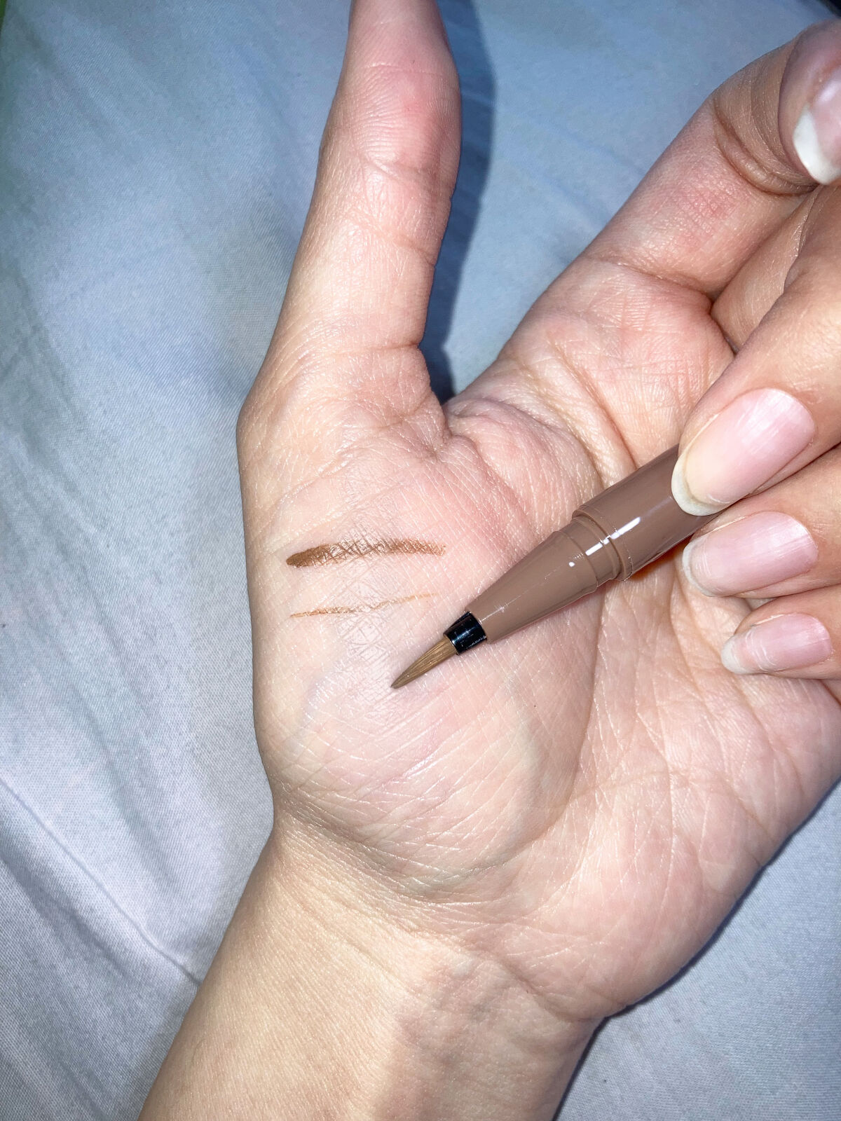 お湯+洗顔料でオフできるのに汗・水に強く、ダマになりにくくデイリーに使いやすい🙆♀️ 使用カラー:「ルビーブラウン」 甘すぎないくすみピンクで、可愛いもかっこいいも演出できる😎 ウォータープルーフタイプなのに、通常洗顔で簡単オフできるスグレモノ!なめらかな書き心地も使いやすくて◎