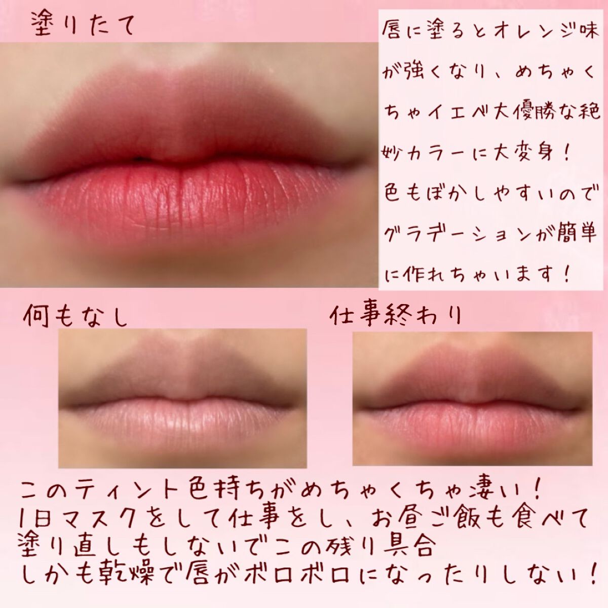 | 口紅・グロス・リップライナーランキング第42位 | 乾燥しにくく、艶感をキープしてくれて、ティント特有の色持ちも良く、ぷるっとしたジューシーな唇に仕上がります | 詳細を見る | |