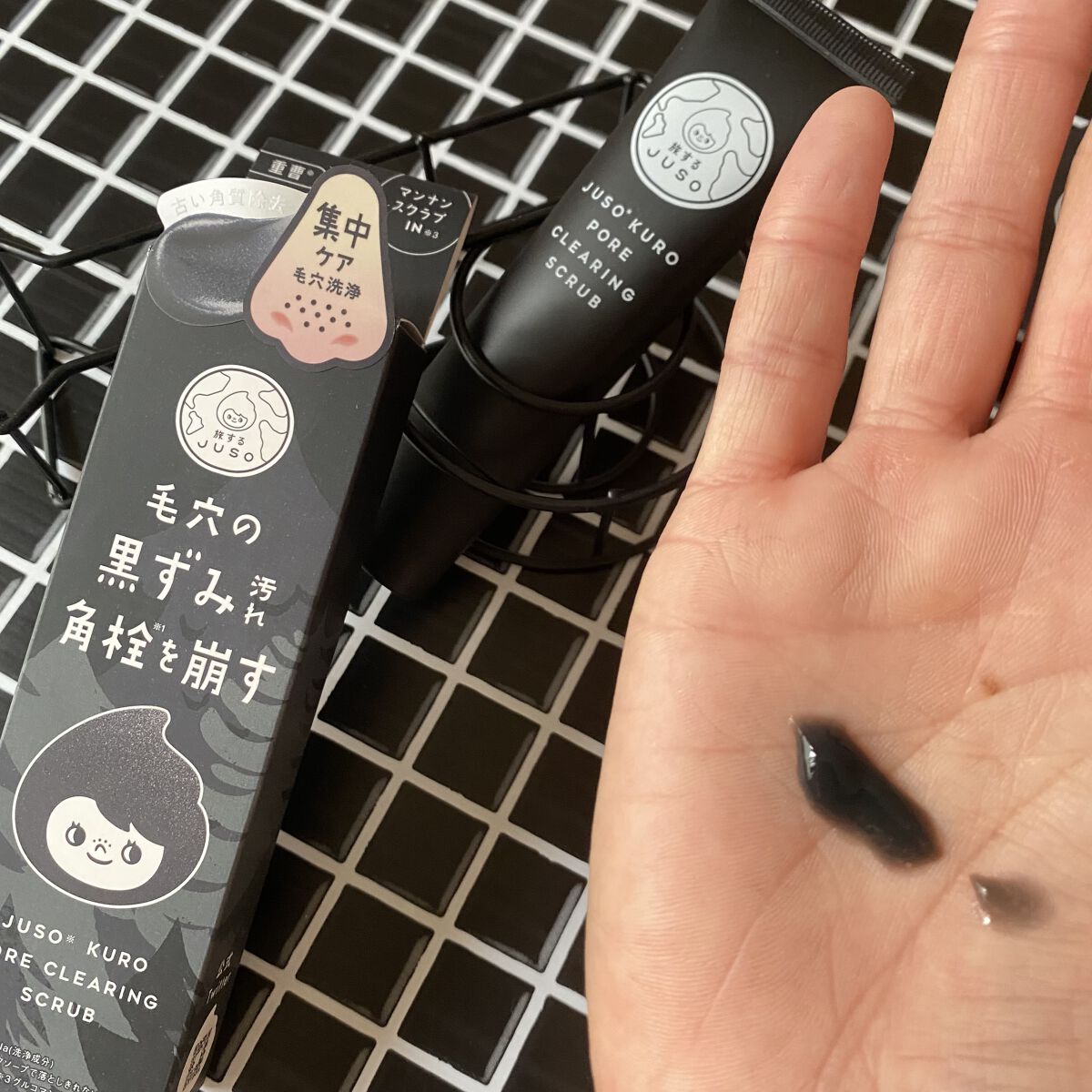- 重曹※1と炭※2を配合した毛穴汚れ専用の黒いスクラブジェル。毛穴の洗浄力を高めた商品にリニューアル。肌に心地いい柔らかなマンナンスクラブ※3入りで、体感と共に毛穴ケアができます。チャ葉エキス、ダイズエキス、アーチチョークエキスなどの保湿成分配合で、汚れを落としながら肌をケアします。毛穴汚れのスペシャルケアに。 ※1 炭酸水素Na(洗浄成分)※2 吸着成分 ※3 グルコマンナン(洗浄成分)