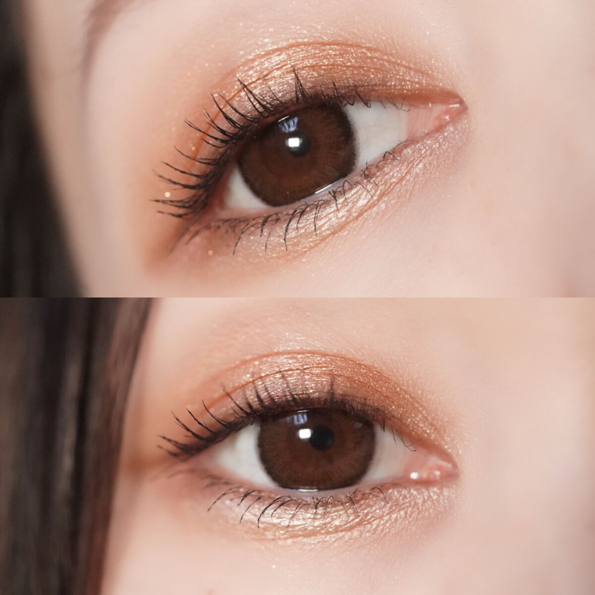 よくパレットのなかで明るいカラーをベースにまぶたに広く塗ることが多いのですが、パール感のあるカラーを避ける🙆♀️! パール感たっぷりの明るいカラーは涙袋に使うぐらい光を集めてぷっくり見せてくれるので、まぶたに広く使うと腫れぼったく見えがち😓 目元を明るくみせてくれたり、次に使うアイシャドウをぼかしやすくしてくれるけど、すっ飛ばしてメインのカラーを塗っちゃう✊🏻❤️🔥 涙袋にはたっぷり塗ってぷっくり見せる🙆♀️💕 シルキースフレアイズのマットタイプはすごく優れているな〜と感じました☺️💗 赤やオレンジなどは、入れすぎると腫れぼったく見えやすいので、見せたいカラーは下まぶた目尻にのせて色をたのしむ♡♡ パール感なしの透けマットだけじゃ物足りない… そう感じさせない華やかなラメが左上に入っているので黒目上と涙袋にのせるとすごく可愛い仕上がりに😍! 厄介な左右差のお陰でマットアイシャドウが好きになりました😌💕