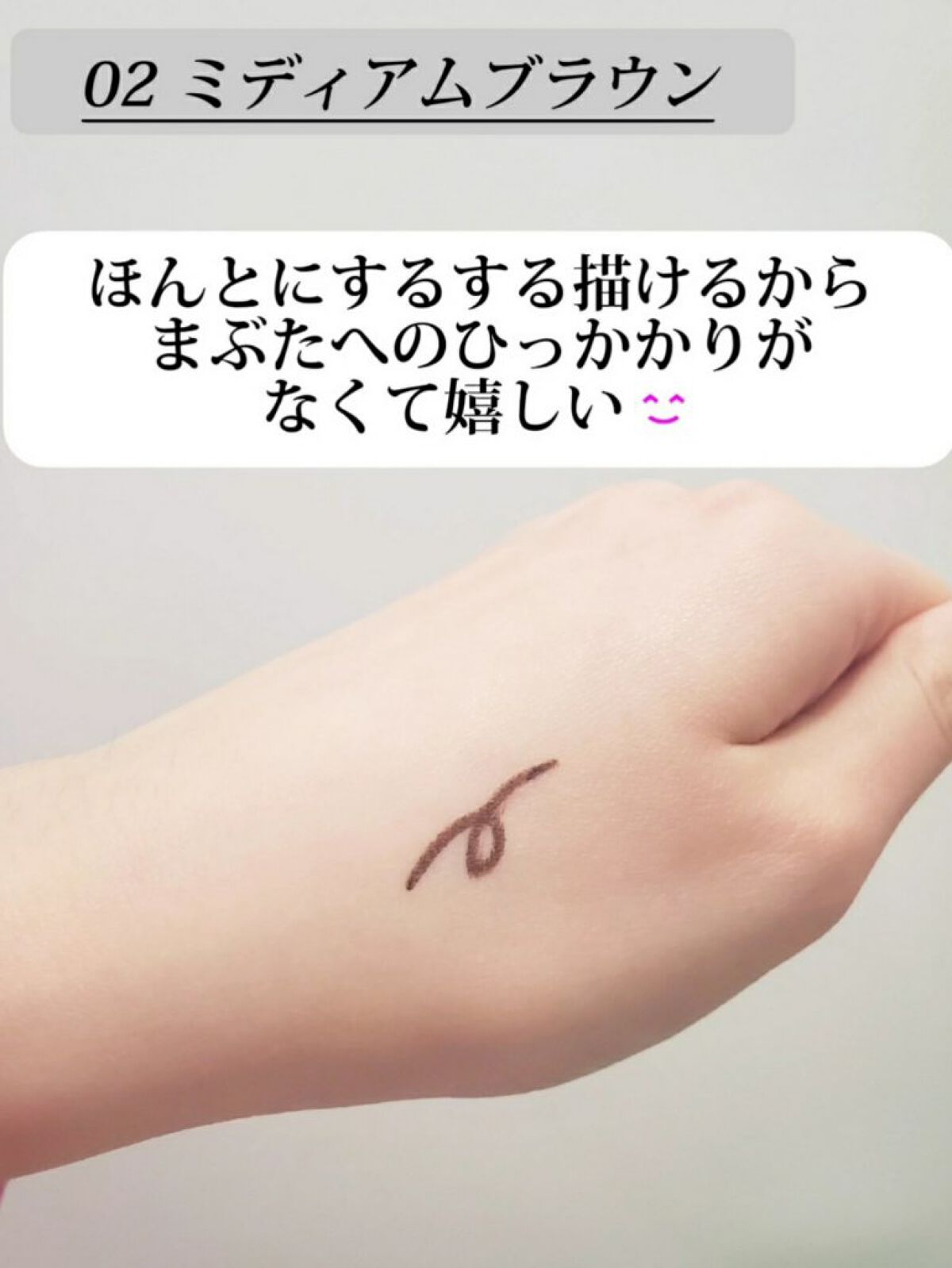 02番のオリーブブラウンという色は、別々に使ってもいいと思いますが、2つの色を混ぜて使うのもありだと思います☺︎ どちらも、暗めのブラウンなので黒髪とか暗めの髪の方にはオススメです😊 ブラシも元からついているので良かったです𓂃 𓈒𓏸𑁍 結構薄づきなので失敗しにくくていいかなと思いました! パッケージもドット柄で可愛いかったです😍