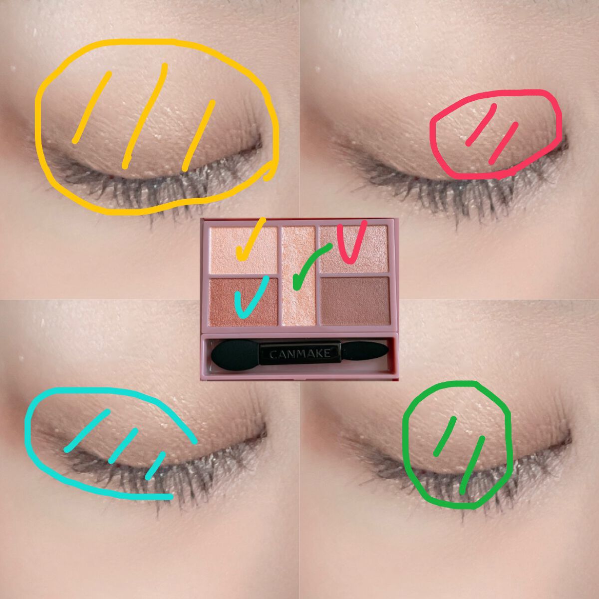 - 1枚のパレットで2つのスタイルが完成! 5色の欲ばりアイシャドウ♥ メインカラーを選んで2つのスタイルが楽しめる! A→B→D でスタイル1 A→C→D でスタイル2 繊細な粉質が、しっとりとまぶたに密着して色落ちを防ぎます。 透明感のあるキラうるトッピングジュエル(繊細ラメ)は、気分によってトッピング!
