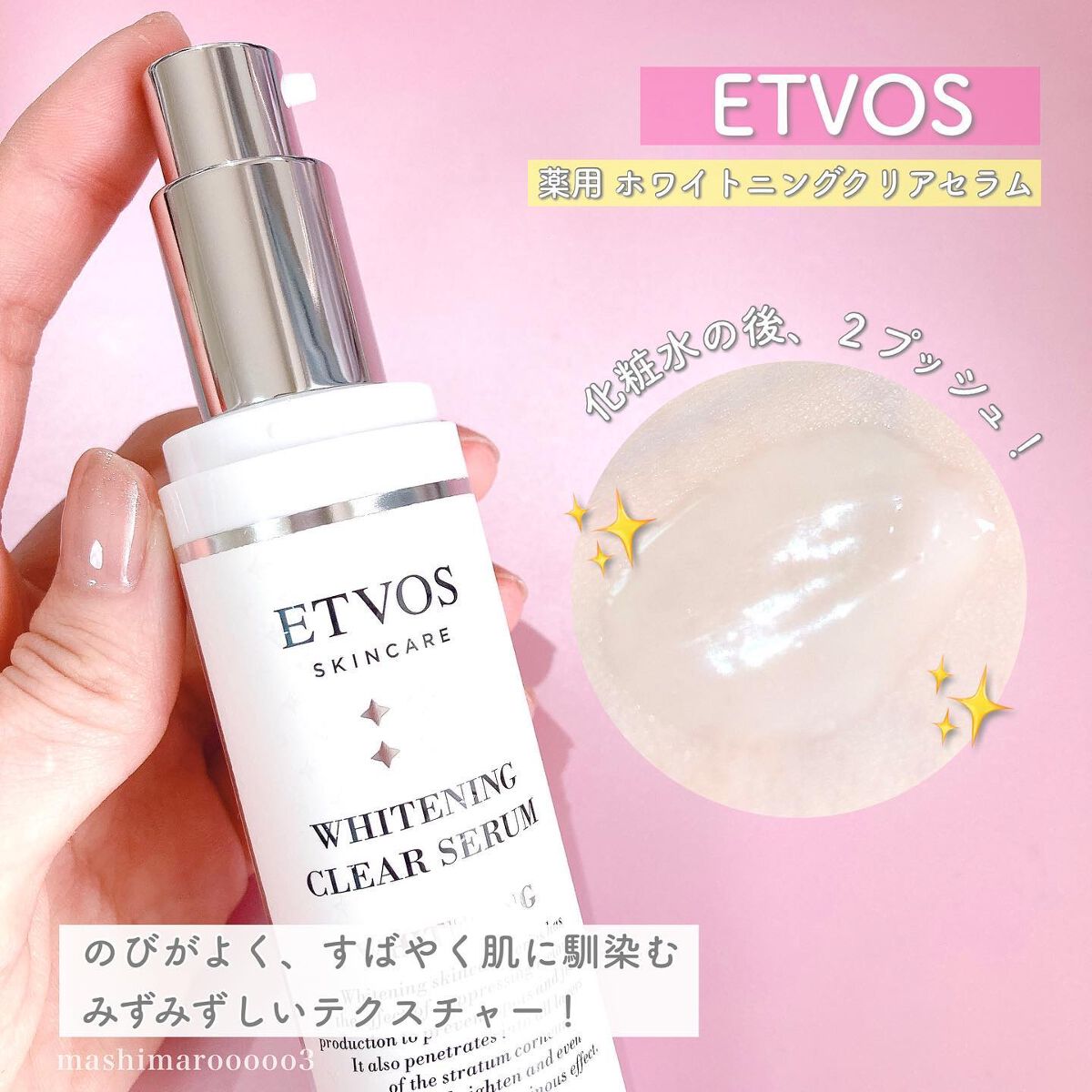 このセラムは敏感肌でも使いやすい、優しい処方だから、肌トラブルもなく使えてます◎ 美白有効成分であるトラネキサム酸が、メラニンの生成を抑え、シミ・そばかすを防ぎ、エトヴォスのキー成分であるヒト型セラミドで、うるおいのベースを整える これ1本で十分、保湿力もあるので乳液使わなくても良さそう✧ ベタつかないのに、しっとりするのがお気に入りポイント𖤐˒˒*