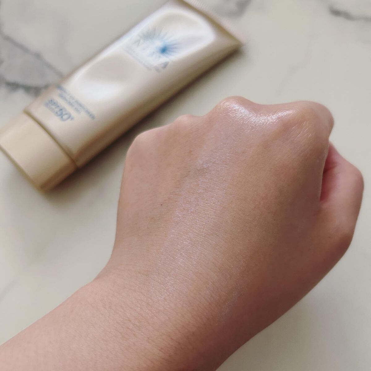 - SPF50+ ・ PA++++ 顔・ から だ用 汗、水、そして空気中の水分※10 に反応してUVブロック膜が強くなる技術搭載 毎日つけたくなる みずみずしいスキンケア UVジェル ※10 暑い時期の高湿度環境 〇汗、水、そして空気中の水分に自動的に反応して 、 UVブロック膜が 強くなります 。-オートブースタ ー 技術 〇透明美肌仕上げ-ビューティ ー アップ 〇スキンケア成分50%配合 〇保湿成分:コラーゲン、スーパーヒアルロン酸※9、グリセリン ※9 アセチルヒアルロン酸Na 〇長時間保湿持続効果 〇スーパーウォータープルーフ 〇マスク蒸れ対応 〇耐こすれ 〇化粧下地効果 〇せっけんで落とせる 〇みずみずしいジェル 〇生まれ変わった、心地よいフルーティーフローラルの香り 〇大気中に浮遊する微粒子、PM2.5などから肌を保護します。 -微粒子付着防止対応 〇海に流れ出にくいオーシャンフレンドリー処方※6 ※6 自社品内の耐水処方でない商品と比較 〇植物由来の原料を一部使用した袋 〇無着色・ノンコメドジェニックテスト・アレルギーテスト済み (全ての方にニキビができない、アレルギーが起きないというわけではありません)