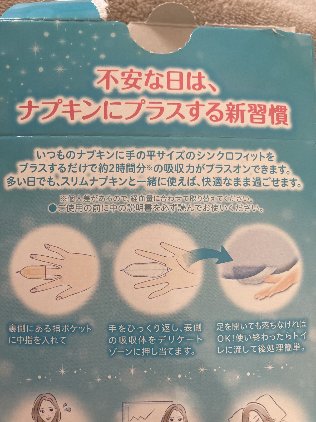 仕事で手が開かない時や多い日の就寝時 いい仕事してくれます✨ こちらとアクティブな時に使うナプキンがあると経血がもれる心配がぐんと減るので安心します😮💨 救世主✨ ソフィ シンクロフィット 多い日の昼用