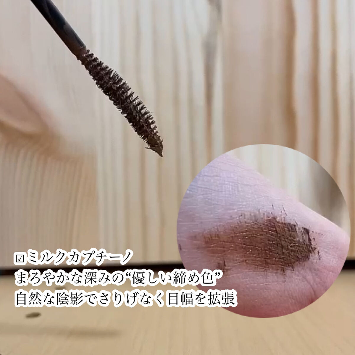 パーフェクトエクステンションマスカラ for カール マスカラ新色 『モカベージュ』 小さめブラシで小回り◎+カールブラシが目のカーブにフィットして塗りやすい🥰 シルキーリキッドアイライナー アイライナー新色 『ミルクカプチーノ』 目尻までかすれず滑らかに理想のラインが描けて、長時間キープ😘 王道ブラウンよりも、柔らかな存在感 やわらかい雰囲気を作りたいときはこれ😍