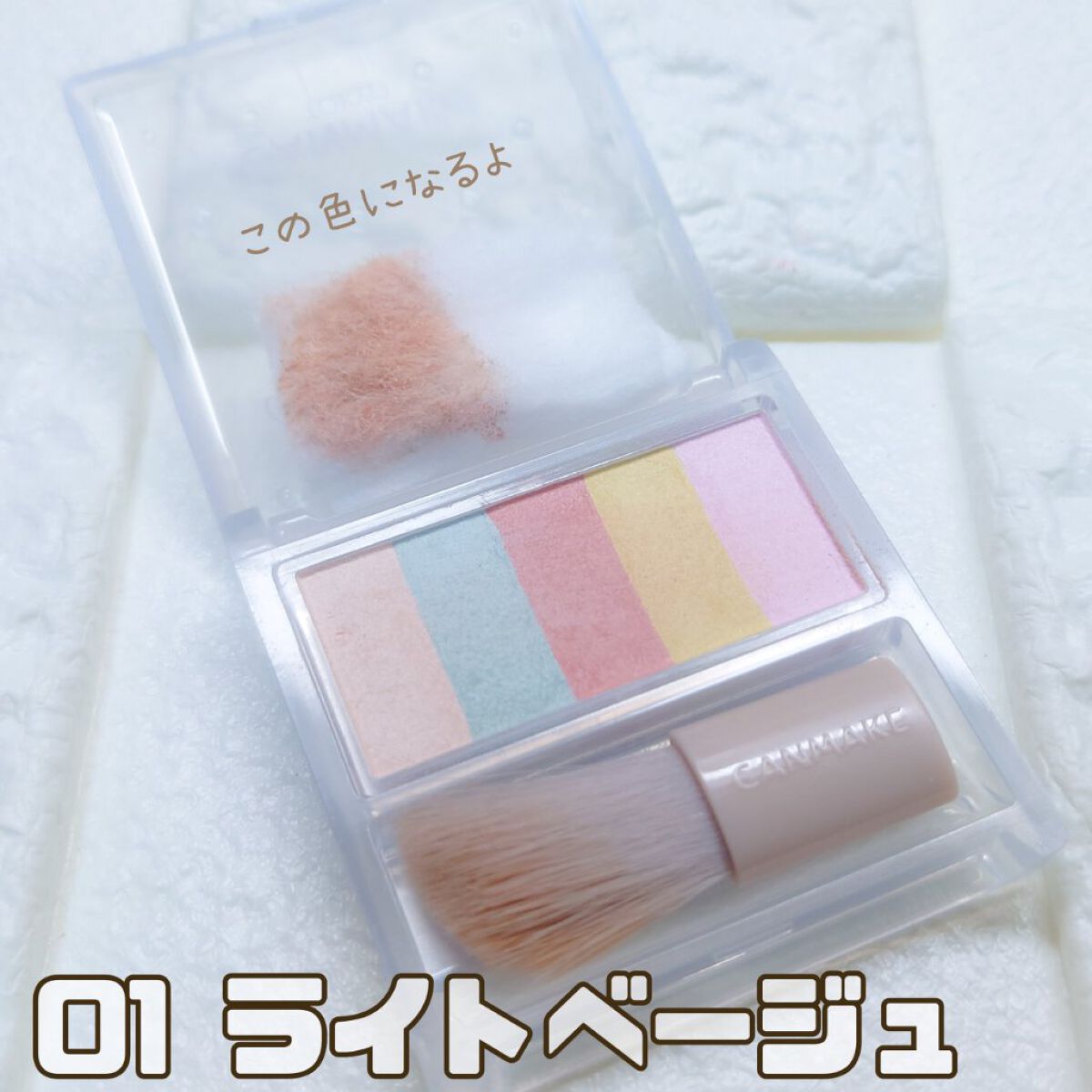 キャンメイク パステルヴェールコンシーラー02 ベージュめるで素肌クマ、頬パウダーコンシーラーカラーでふわっとぼかす混ぜるとベージュベースメイクの最後に使用します。左から順番に2〜3回ブラシを滑らせる。クマや頬の上にふわっと重ねる悩みによって...