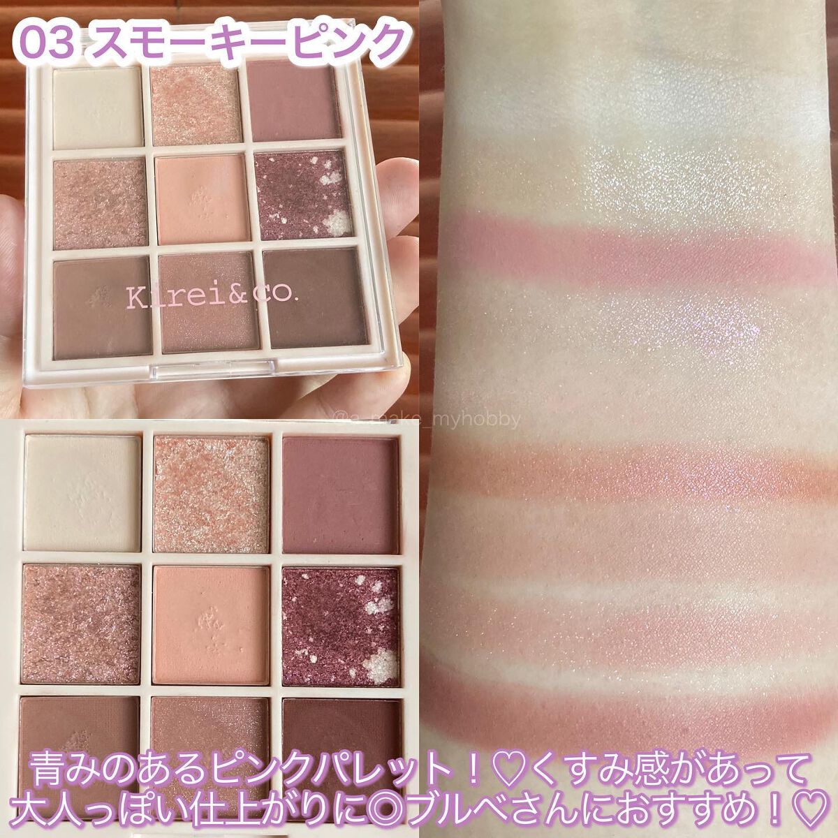 \\Kirei&co.アイシャドウパレット03スモーキーピンク//ALL660円で買えるコスメブランドといえば…Kirei&co.✨その中でも大人気商品のアイシャドウ使った事ある方いますか?なんと660円なのに9色も入っているんです!1色あた...