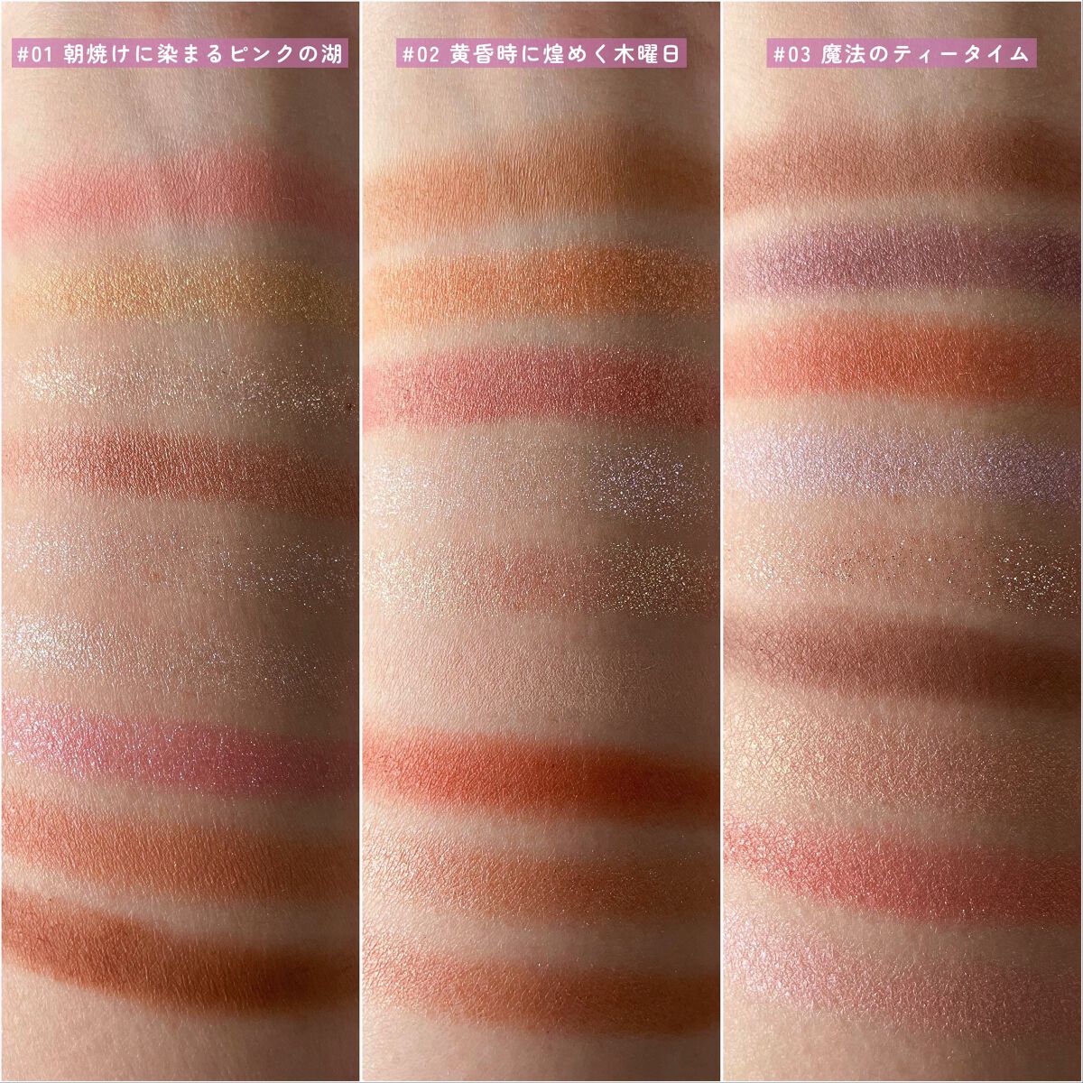 こうして並べてみると、ほんっとに可愛い…! 個人的に1番好きなカラーは新作のシェルピンクで、まさに求めていたカラー🥲💖ピンク系ハイライトに弱い…好き…🥲 4色の中でもロゼベージュは色味が濃いめなので、チークの下地として仕込むのもおすすめです☺️💕 オーロラミントは白み系ハイライトなので、透明感を出したいときにはもってこい💪🏻❤️ 初心者さんにおすすめなのは、やっぱり肌馴染みが良いシャンパンベージュなのかなぁと思っています🤔✨
