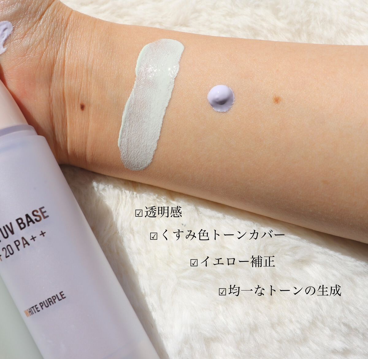 1本でトーン補正・ホワイトニング UVカットの3役果たす メイクアップベース💜💚 💚White Green 肌の赤み(毛穴・ニキビ跡)をカバー 💜White Purple 肌のくすみを補正するので 透明感がでます 少量でよく伸びて肌に密着して 毛穴の凹凸も隠してくれます🤭 ベタつかずサラッとした仕上がりで メイクがよれない👏 長時間メイクが崩れないので お化粧直しの回数が減りました😊💕🎶