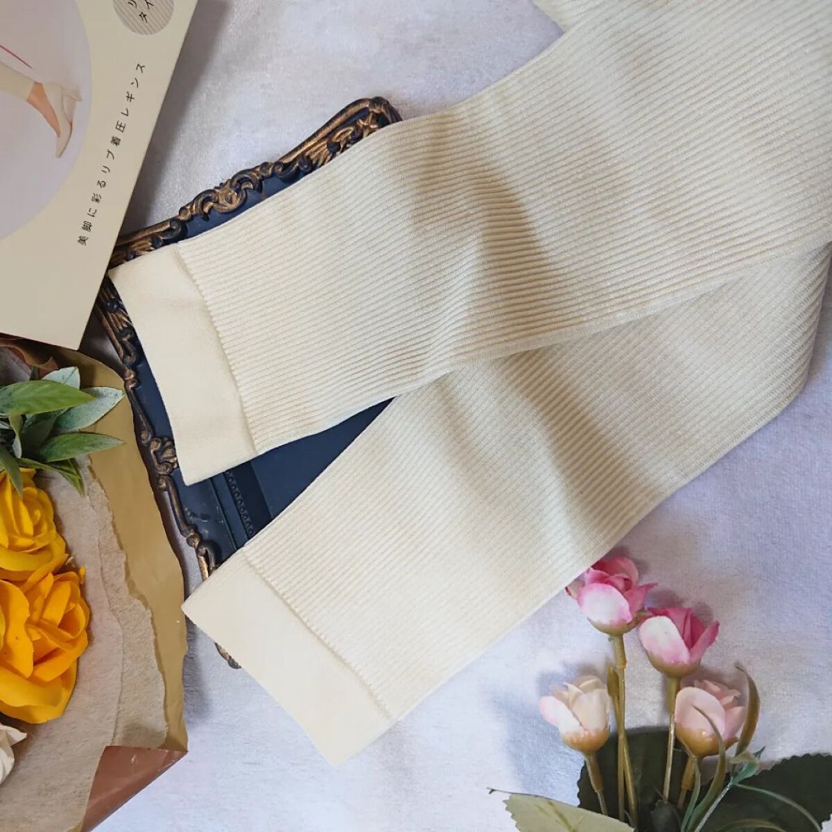 見た目はデニムなのに、強着圧❣️ これ1枚で、デニムスタイルと着圧ケアが完結するレギンスです✨ キュッと引き締まる感じですが、キツさは気になりません✨ 足全体を引き締め、骨盤周りも引き締めて、お腹をしっかりおさえてくれる着圧構造になっているそうです。