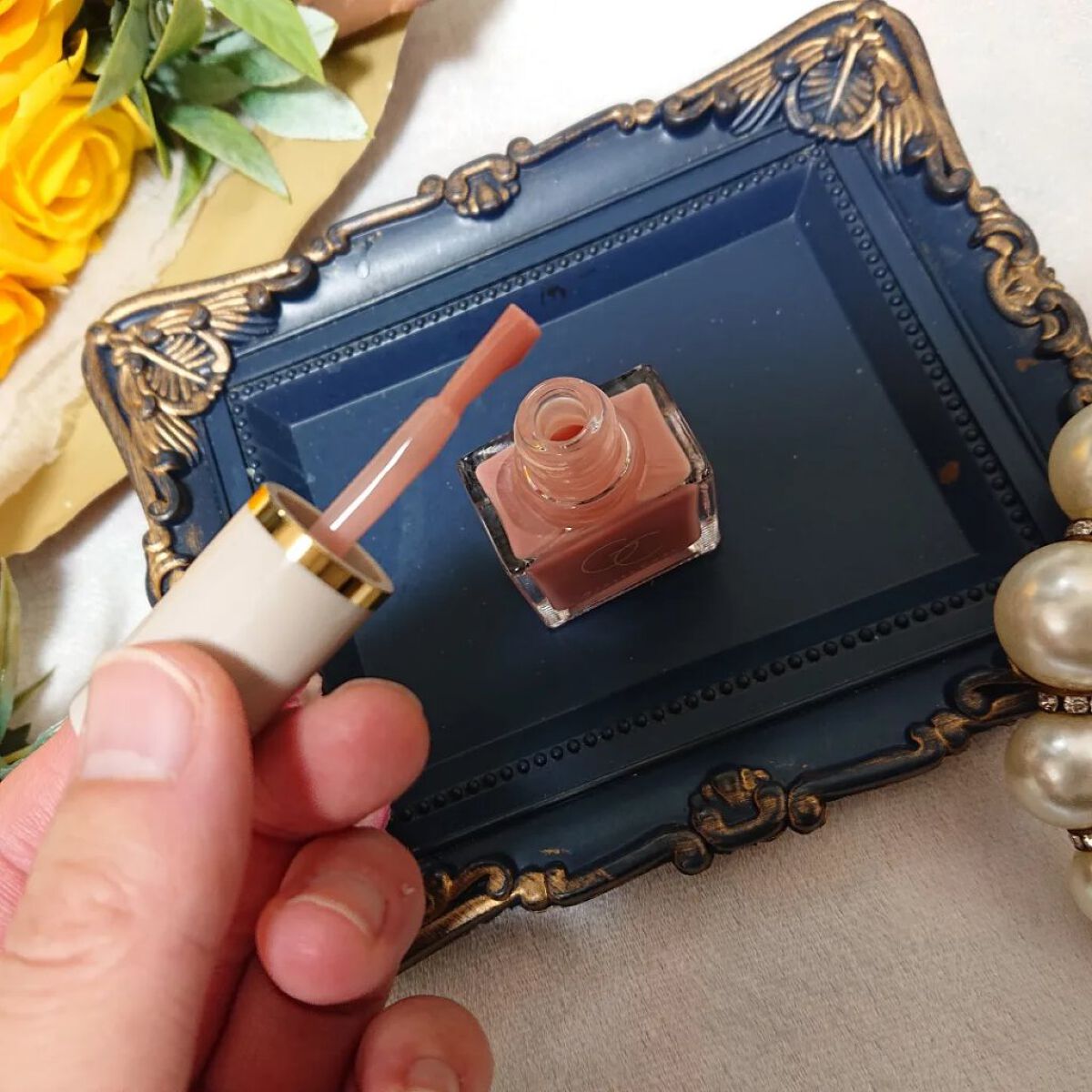 ベースコート・ネイルカラー・トップコートが1本で完了するオールインワンネイルです。 大好きなくすみカラーの種類も多く、発色が良くて気に入りました! 乾きやすくダマになりにくいので、とても塗りやすかったです!