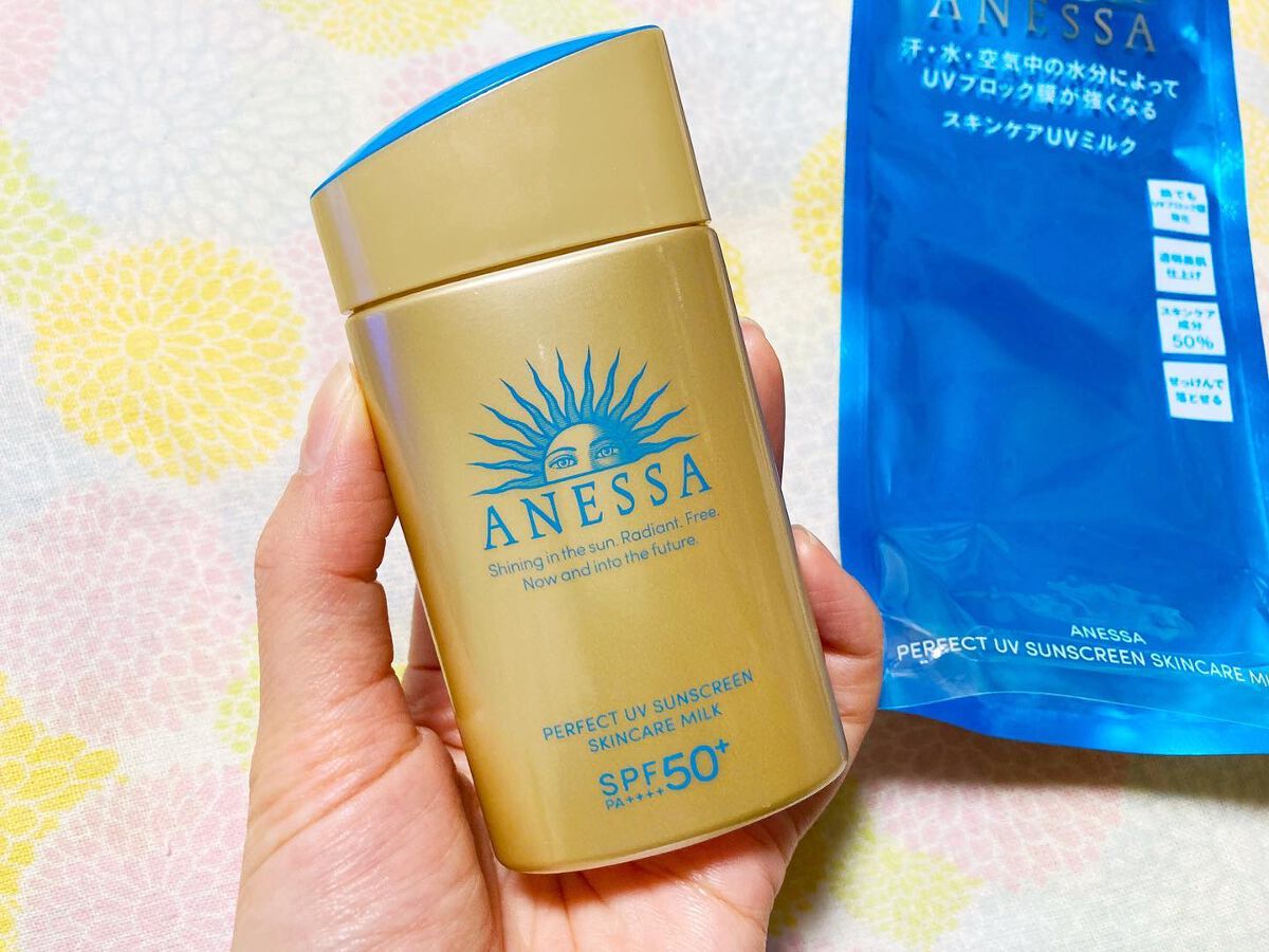 - 顔・からだ用 SPF50+ ・ PA++++ 汗、水、熱、そして空気中の水分に反応してUVブロック膜が強くなる技術搭載 最強※8 UVスキンケアミルク ※8 「最強」とはSPF50+・PA++++、及びアネッサ内ウォータープルーフ効果を意味する。 〇汗・水・熱、そして空気中の水分に自動的に反応して、UVブロック膜が強くなります。-オートブースター技術 〇透明美肌仕上げ-ビューティーアップ効果 “ビューティーアップ粉末”を新配合透明感のある美しいつや肌へ ○スキ ン ケア成 分 50% 配合 〇植物由来成分をブレンドした、紫外線による 乾燥 ダメージを防 ぐ 、うるおいを与える保湿美肌成分 黄花エキス、緑茶エキス、異性化糖、グリセリン 〇保湿 成分 コラーゲン、 スーパーヒアルロン酸※ 9 、 グリセリン ※9 アセチルヒアルロン 酸 Na 〇保湿持続 効果 ○スーパーウォータープルーフ 〇マスク蒸れ対応 〇耐こすれ ○化粧下地効果 ○せっけんで落とせ る 〇さらさらミルク ○生まれ変わった 、 心地よいフルーティーフローラルの香り 〇大気中に浮遊する微粒子、 PM2 .5 などから肌を保護 し ま す。-微粒子付着防止対応 ○砂が肌 につきにくいサンドプルーフ効果 〇海に流れ出にくいオーシャンフレンドリー処方※6 ※6 自社品内の耐水処方でない商品と比較 ○環境に優しいサステナブルなボトル ○植物由来の原料を一部使用した袋 〇オキシベンゾン 、 オクチノキサート無配合 ○無着色・ ノンコメドジェニックテスト・ アレルギーテスト済み (全ての方にニキビができない、アレルギ ーが起きないというわ けではありません)