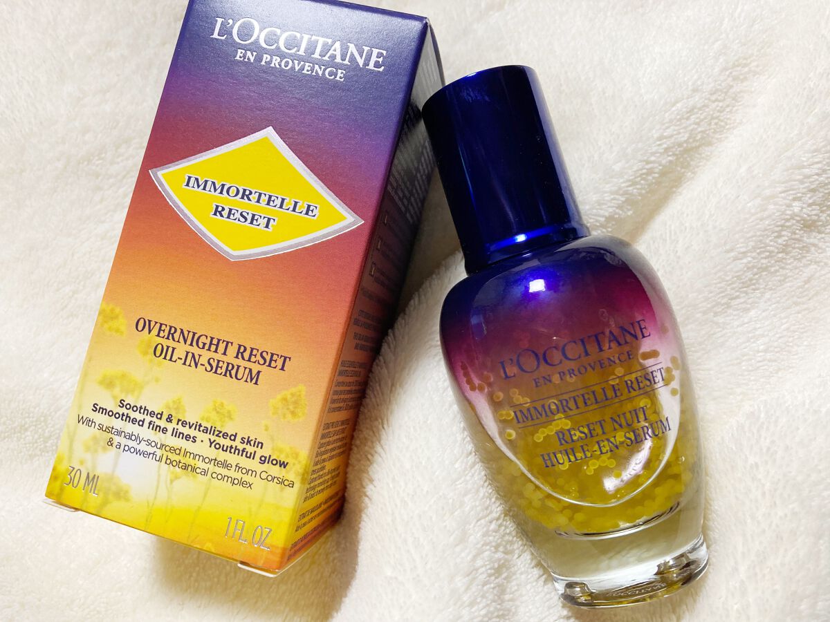 ロクシタンのコスメは私は好きで。フレグランスやスキンケアを愛用しています。香りが良いのと、元祖オーガニックコスメというところが気に入っています。ロクシタンイモーテルオーバーナイトリセットセラムは、眠る間に肌を集中ケアする夜用美容液。化粧水の後...