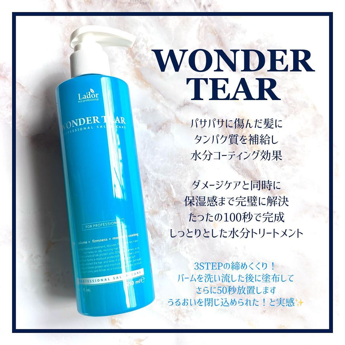 🇰🇷Qoo10メガ割で毎回購入している溺愛アイテム…🧖♀️#購入品紹介La'dorラドール@lador_jpWONDERBALMこちらは洗い流すヘアトリートメントでシャンプー後に使用🧴髪に塗布して50秒で洗い流すことができる(気分でもう少し...