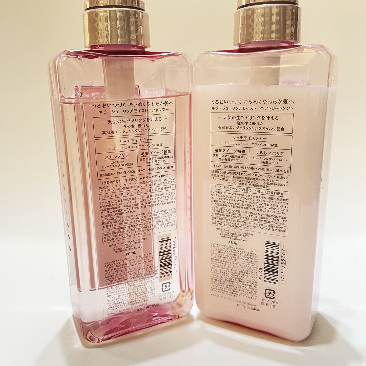 _キラージュ様から頂きました♡KIRAGERICHMOISTSHAMPOOキラージュリッチモイストシャンプー480ml/¥1,540RICHMOISTTREATMENTリッチモイストヘアトリートメント480ml/¥1,540【天使の生ツヤリン...
