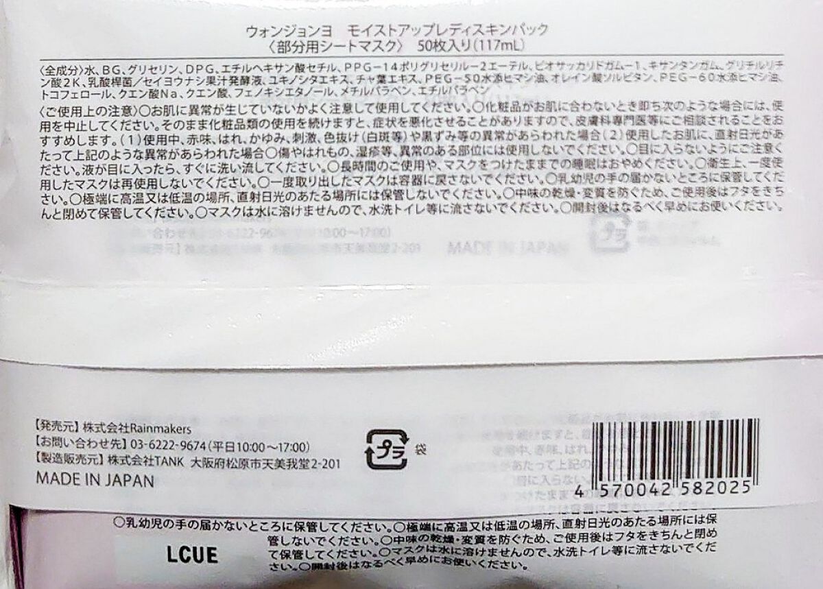- <【旧】ウォンジョンヨ モイストアップレディスキンパック 50枚> DPG、PPG-14ポリグリセリル-2エーテル、PEG-50水添ヒマシ油、ビオサッカリドガム-1、オレイン酸ソルビタン、クエン酸Na、ユキノシタエキス、エチルパラベン、乳酸桿菌/セイヨウナシ果汁発酵液、PEG-60水添ヒマシ油、クエン酸、水、グリチルリチン酸2K、チャ葉エキス、トコフェロール、エチルヘキサン酸セチル、メチルパラベン、フェノキシエタノール、キサンタンガム、グリセリン、BG <【旧】ウォンジョンヨ モイストアップレディスキンパック お試しサイズ(12枚入り)> DPG、PPG-14ポリグリセリル-2エーテル、PEG-50水添ヒマシ油、ビオサッカリドガム-1、オレイン酸ソルビタン、クエン酸Na、ユキノシタエキス、エチルパラベン、乳酸桿菌/セイヨウナシ果汁発酵液、PEG-60水添ヒマシ油、クエン酸、水、グリチルリチン酸2K、チャ葉エキス、トコフェロール、エチルヘキサン酸セチル、メチルパラベン、フェノキシエタノール、キサンタンガム、グリセリン、BG <50枚入り> 水、BG、グリセリン、DPG、エチルヘキサン酸セチル、PPG-14ポリグリセリル-2エーテル、ビオサッカリドガム-1、キサンタンガム、グリチルリチン酸2K、乳酸桿菌/セイヨウナシ果汁発酵液、ユキノシタエキス、チャ葉エキス、PEG-50水添ヒマシ油、オレイン酸ソルビタン、PEG-60水添ヒマシ油、トコフェロール、クエン酸Na、クエン酸、フェノキシエタノール、メチルパラベン、エチルパラベン <12枚入り> 水、BG、グリセリン、DPG、エチルヘキサン酸セチル、PPG-14ポリグリセリル-2エーテル、ビオサッカリドガム-1、キサンタンガム、グリチルリチン酸2K、乳酸桿菌/セイヨウナシ果汁発酵液、ユキノシタエキス、チャ葉エキス、PEG-50水添ヒマシ油、オレイン酸ソルビタン、PEG-60水添ヒマシ油、トコフェロール、クエン酸Na、クエン酸、フェノキシエタノール、メチルパラベン、エチルパラベン
