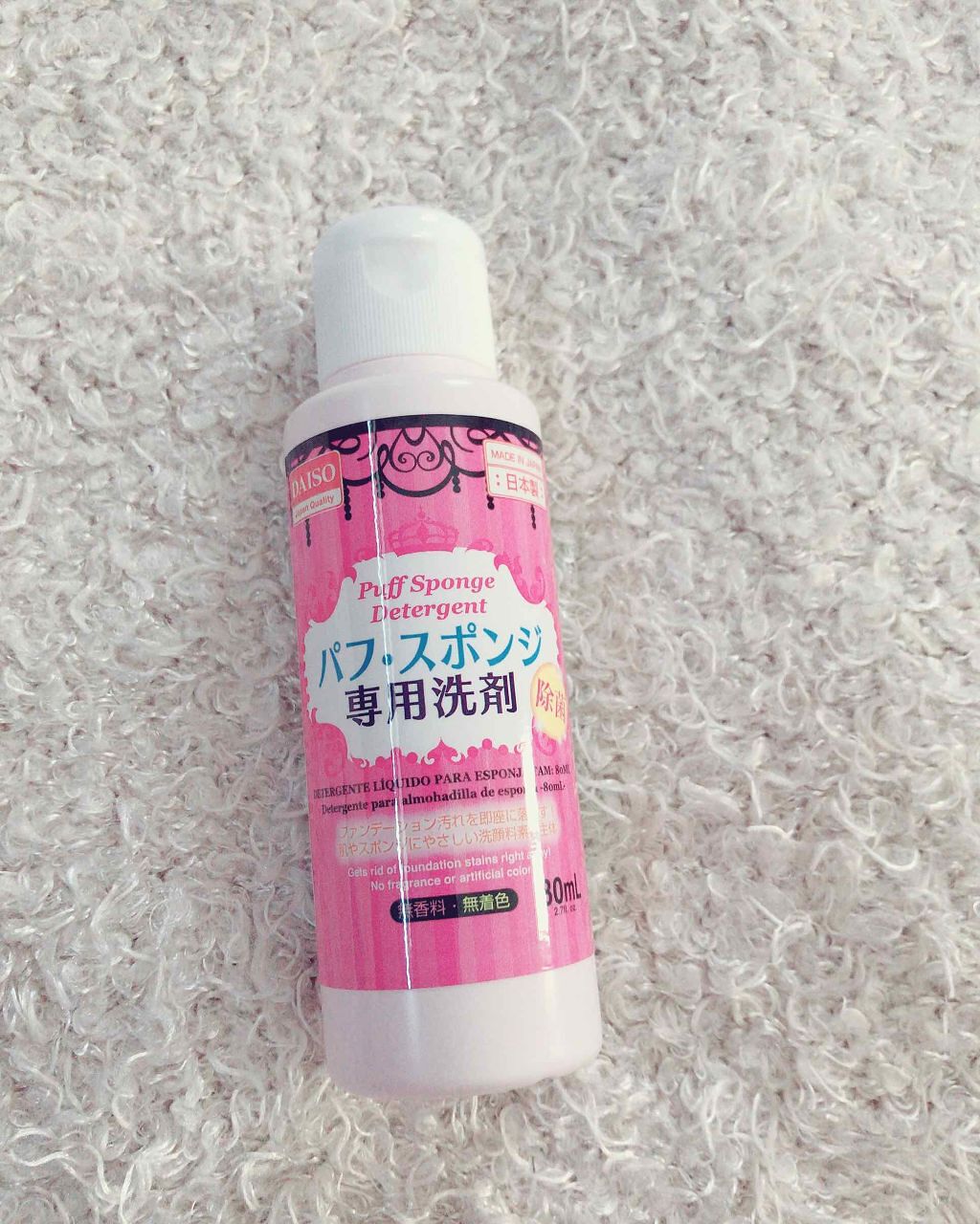 いつも中性洗剤で洗っていましたが、DAISOパフ・スポンジ専用洗剤¥110気になってはいましたが中性洗剤でも不便なかったので買わずにきていたのですが母親がかったら中性洗剤では落ちなくてもこれならすごい綺麗になる!と言われへぇーと思い購入🤣透明...