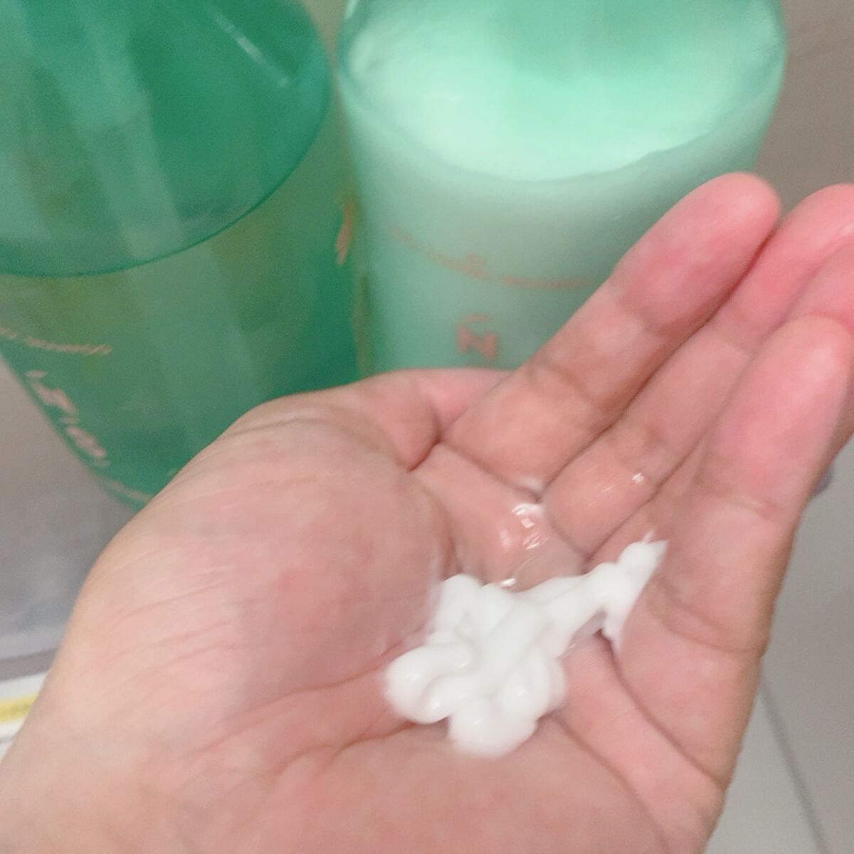 シャンプーは泡立ちが良くて洗い上がりはするんとしたうるおいのある指通り、トリートメントはしっとりつるんとして洗い流したあとの髪がストンっと落ち着いた!✨ 年齢と共に髪のタンパク質やうるおいが減ってしまうとうねりが出やすくなるのですが、そういった方にもおすすめ出来ます👌