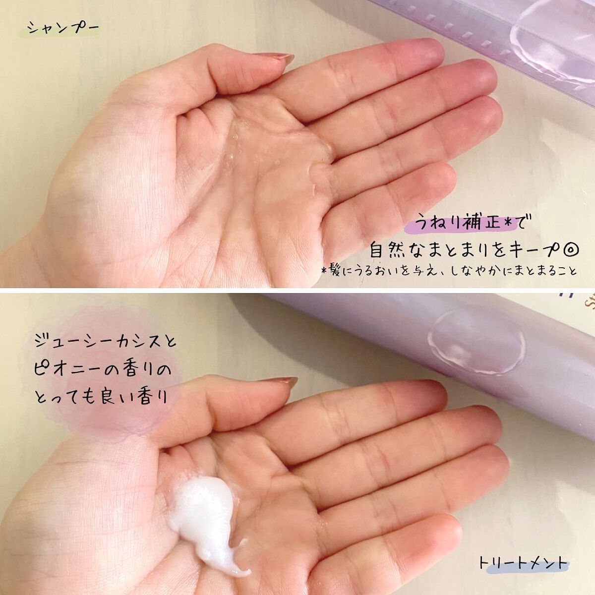 朝、髪がまとまらない原因の1つは髪の水分不足 保水ケア美容で、朝起きてから1日中素直にまとまるツヤ髪へ シャンプーは泡立ち良く洗いやすい印象 ヘアブースターはとろみのあるテクスチャでスッと馴染んでくれてました! 香りはホワイトフリージア&グリーン 清潔感のある優しい香りがお気に入り!