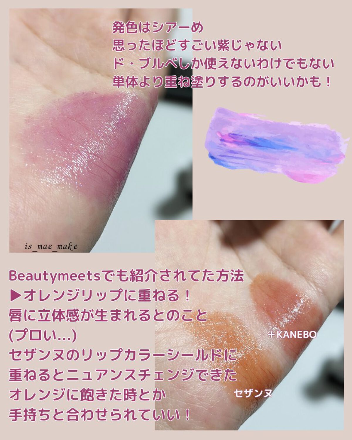 イエベにもブルベにも使えるカラーらしく、確かにブルベ夏とイエベ秋という季節を挟んでいる(と思われる)私にとって使いやすいカラーです 全部のカラーを使うとするとイエベ春さん向けかな〜と思います このラメめちゃくちゃ繊細でキラキラ✨ 自然に血色感をプラスしてくれるカラーです マットよりツヤタイプのほうが透明感も出ていいと思います マスカラはブラックよりブラウンでふんわりと バッチバチにボリュームを盛るというより自然な流れ感をイメージするといいと思います