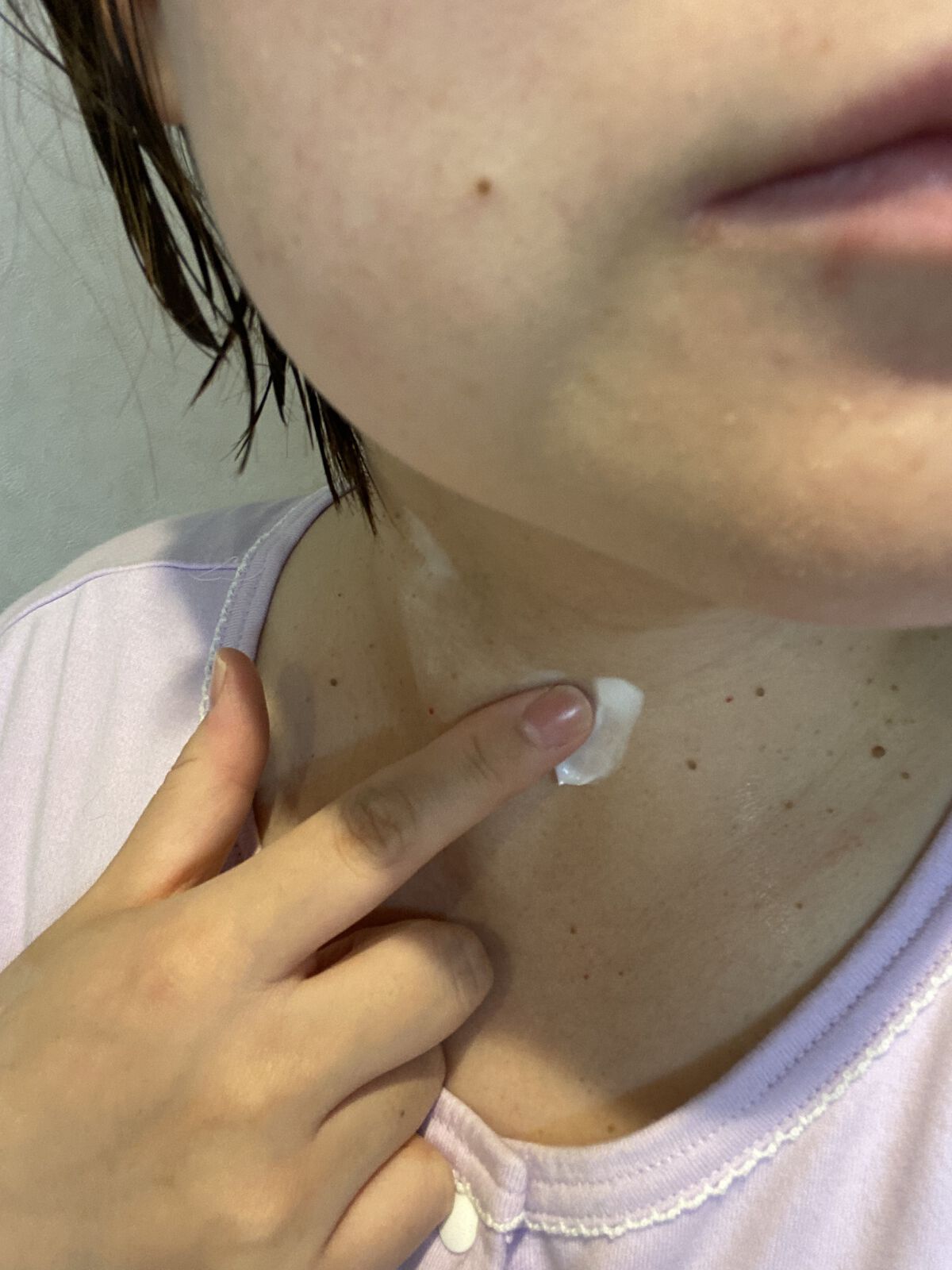 植物性ハリケア成分のバクチオール&ナイアシンアミド配合で、顔だけでなくスマホなどでうつむき癖の跡ができやすい首元までケアしてなめらかなハリ肌へ導いてくれます🌈 なめらかなクリームで、すーっと塗り広げられました。 肌へのなじみがよくしっとりとした使い心地☺️ べたつきもなくて使いやすいです! バイオレットハニーのやわらかくて温かみがあるような甘い香りがすっごく好きです💕 なので顔と首を1つでケアできるのはすごく嬉しい😆 首は年齢が出やすい部分なので、顔と同じようにしっかりケアしていきたいです!