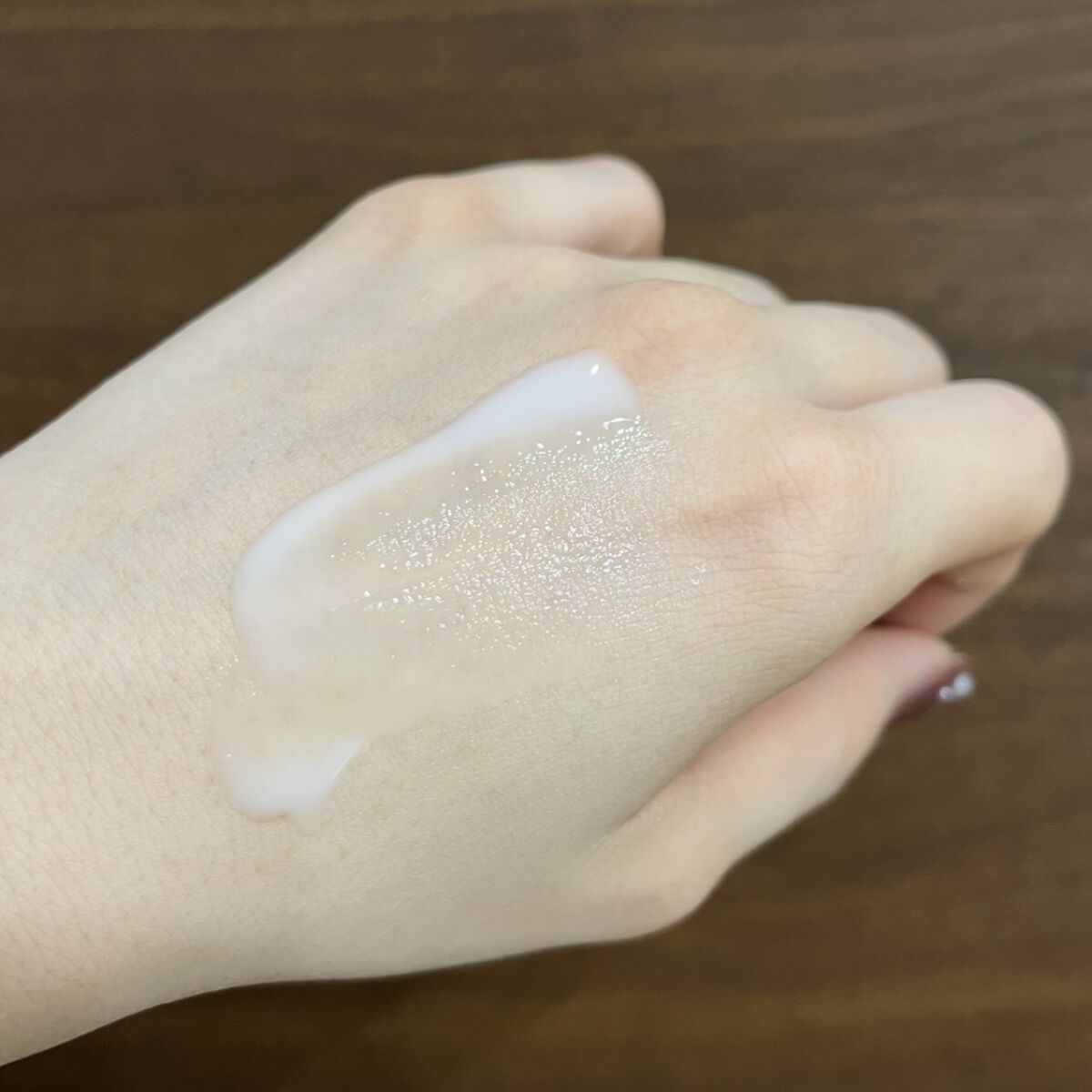 ジェルのようなテクスチャで塗り心地⭕️ 薄く伸び広がり、きしみやベタつきは感じません。 ペールピンク色でナチュラルに明るくトーンアップしました。 あくまでも自然、白くはなりません🤍 1つ目は香り。 クリアローズの香りがついてますが、これがかなり好みが分かれるかも。 2つ目はメイク後の乾燥。 これ単品だと適度にしっとり感があるけど、上からメイクするとすごく乾燥を感じました… 単品使用の時は汗をかいても白浮きしないけど、メイクを重ねると汗が白っぽく、粉っぽくなる💦