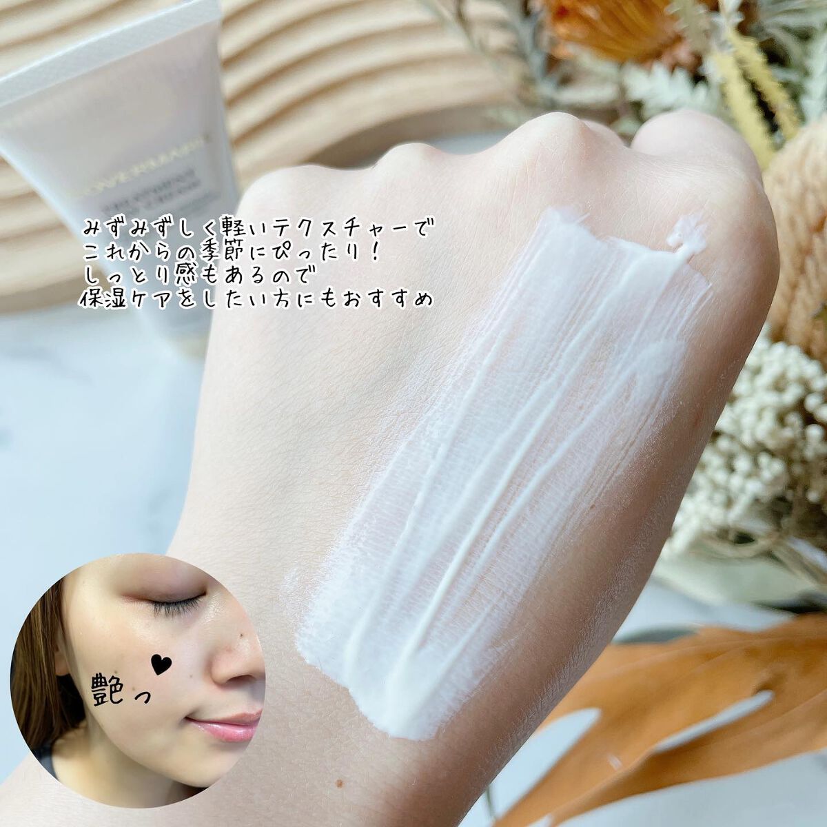 SPF50+ PA++++という高い紫外線カット効果を持ちながらスキンケア感覚で使える日中用クリーム! コラーゲンを補給してハリ感のある肌へと導きます。 エイジングのお悩みがある方には特におすすめです。 テクスチャーは軽やかでベタつかず、乳液とクリームの中間のような使用感。