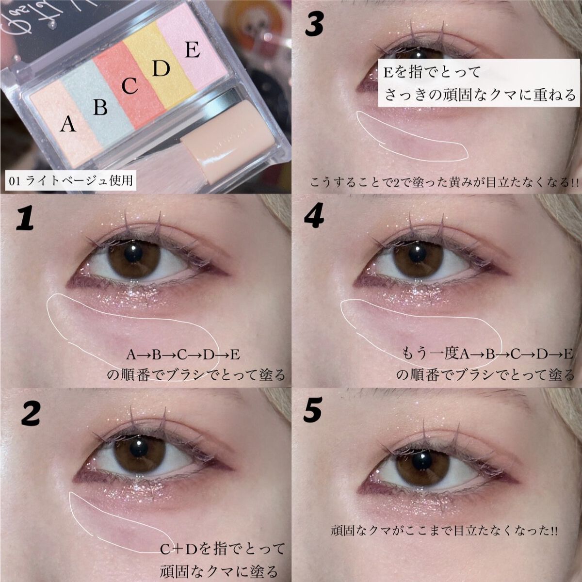 - カラーのヴェールでふわっとボカす パウダータイプのコンシーラー カラーを混ぜて、クマや頬の赤みなどのお悩みを ふわっとボカして素肌っぽい仕上がりに♡ お悩みによってブレンドするバランスを変えたり、単色使いすることで お肌に合った色味に調整できます。
