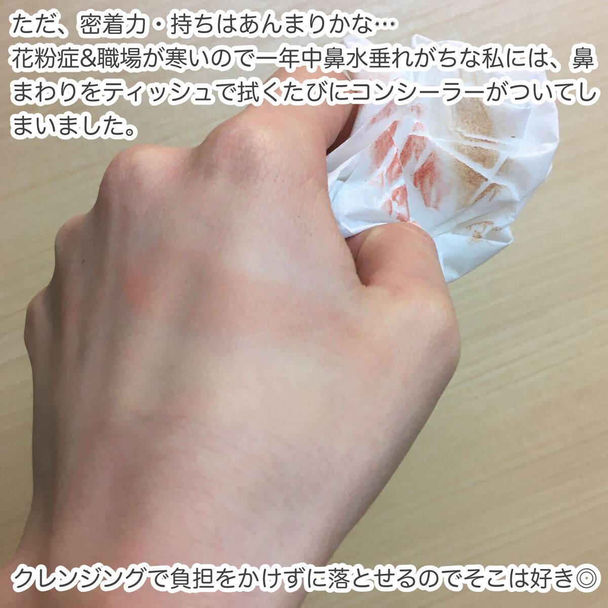 | コンシーラーランキング第18位 | コンシーラーが指の温度でとろける しっとりとした、なめらかなテクスチャー | 詳細を見る | |