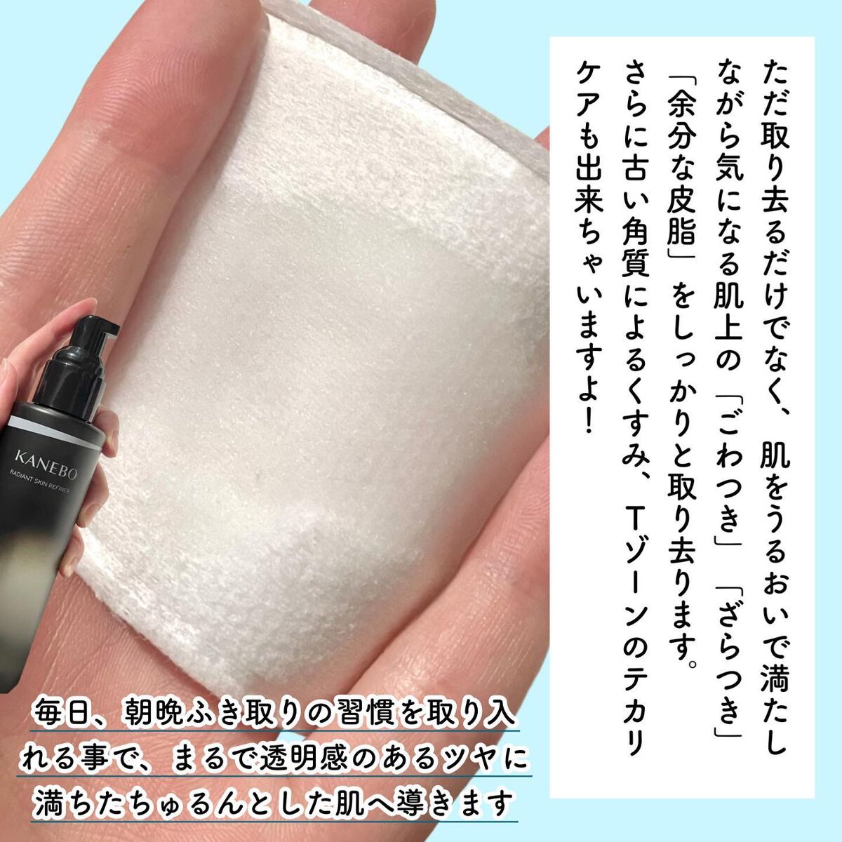 【ラディアント スキン リファイナー】本体を使い切ったのでレフィルを購入しました😌シャバシャバのテクスチャーの拭き取り化粧水です!1回につきポンプ3押し分が使用量の目安で、洗顔後にコットンに取り、顔全体を中央から外側に向かって、あごの裏までや...