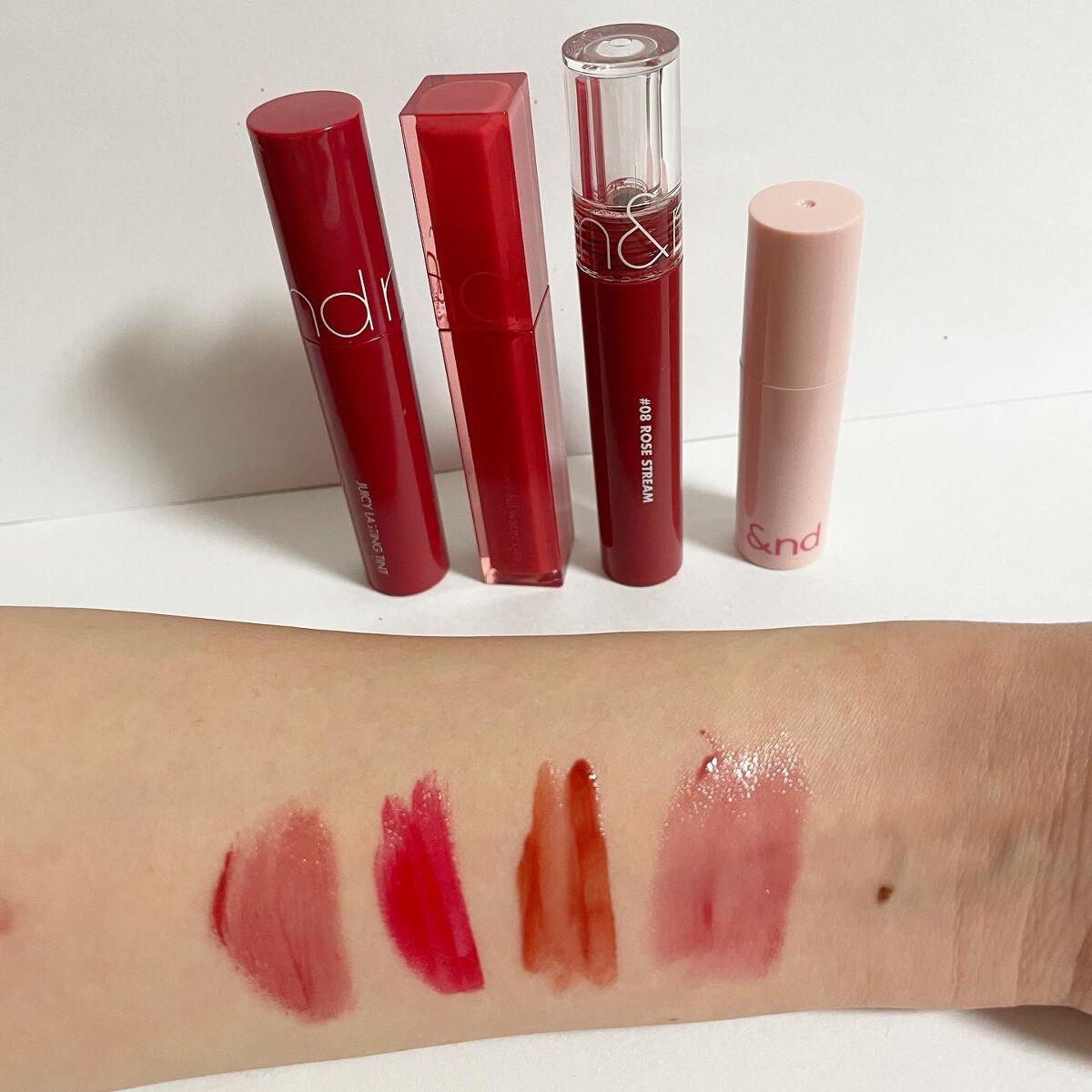 【&ndbyrom&ndティント全色レポ💗】#アンドバイロムアンドグラッシーホムティント¥780(税込)BE01ヌーディーヌードBR01デザートブリックBR02ローズビーンBR03ココアブラウンPK01ピンクデアーLAWSONで買えます!#コ...