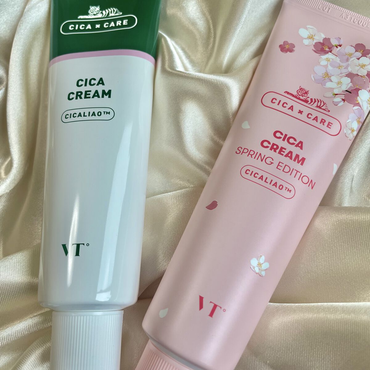 限定のCICAちゃんパッケージ🐯🍀 VTの代名詞♫ CICAクリームの良いところはそのままで、さらにしっとり潤いを角層へ届けて油分・水分バランスを整える! 70mlの増量サイズで毎日たっぷり使える! ✔ VTのかわいいマスコット「CICAちゃん」の絵柄入り💓 可愛さMAXのスペシャルパッケージ! パワーアップしたCICAクリームプラスは、更に潤いをしっかり届けてくれるようになったそう👏 お馴染みのぷるんとしたジェルクリームは、ベタつかないのにしっとりとした使用感で安定の良さ🥰