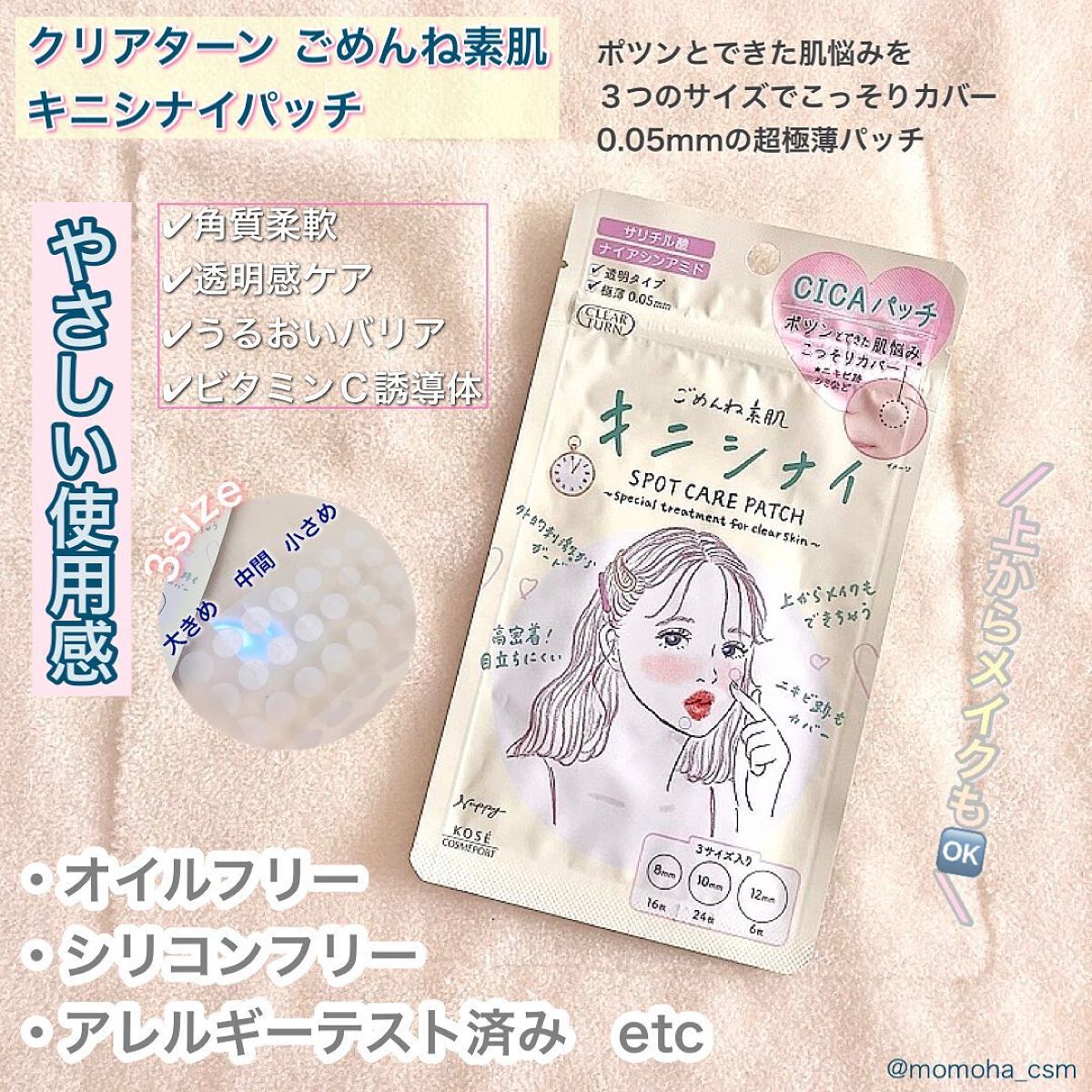 マジで目立ちにくい!! →貼ってるの忘れるくらい目立たない! 透明、高密着で目立ちにくい!! →自然だからめっちゃ馴染む、違和感なし サイズが3種類あるから大きさに合わせて使い分けができるよ!
