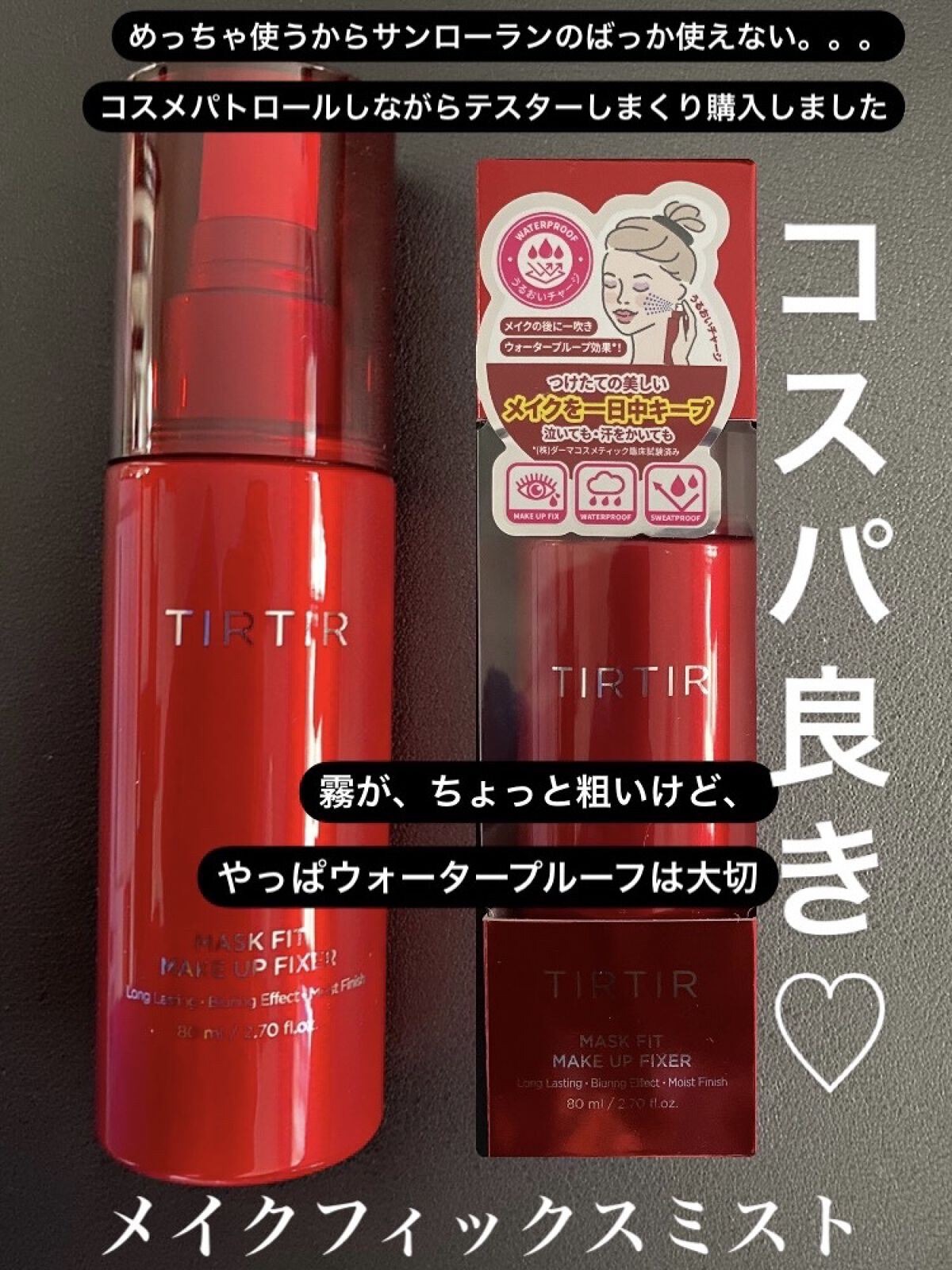 【TIRTIR】#コスメ購入品MASKFITMAKE-UPFIXERマスクメイクの相棒に、赤パケが目を引くフィクサー👀ふんわりと肌に広がるミストがメイクをしっかりホールド。マスクとのこすれや湿気対策として使用しています。テカリやベタつきが気に...