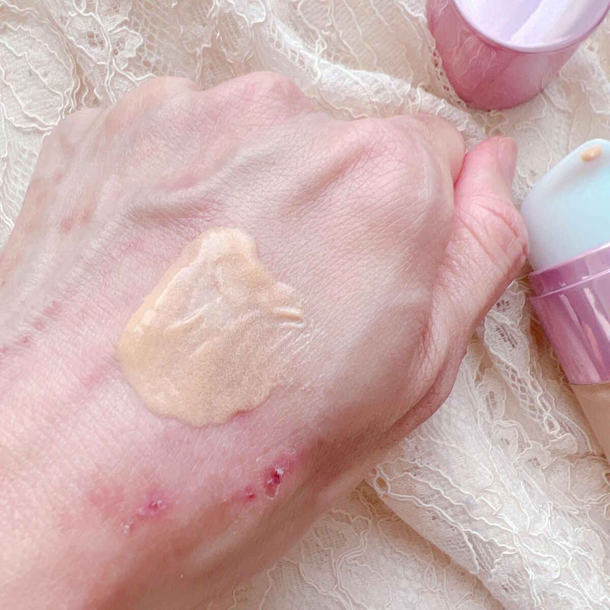 candydollケアオイルティントリップ.キャンディドールのガチレポ企画でもらいました❤️全色スウォッチ✨✨上から501,502,503,504,505だよ🌸.個人的には501がお気に入り😇❤️開発でも1番色味を決めるのが大変だったんだって...