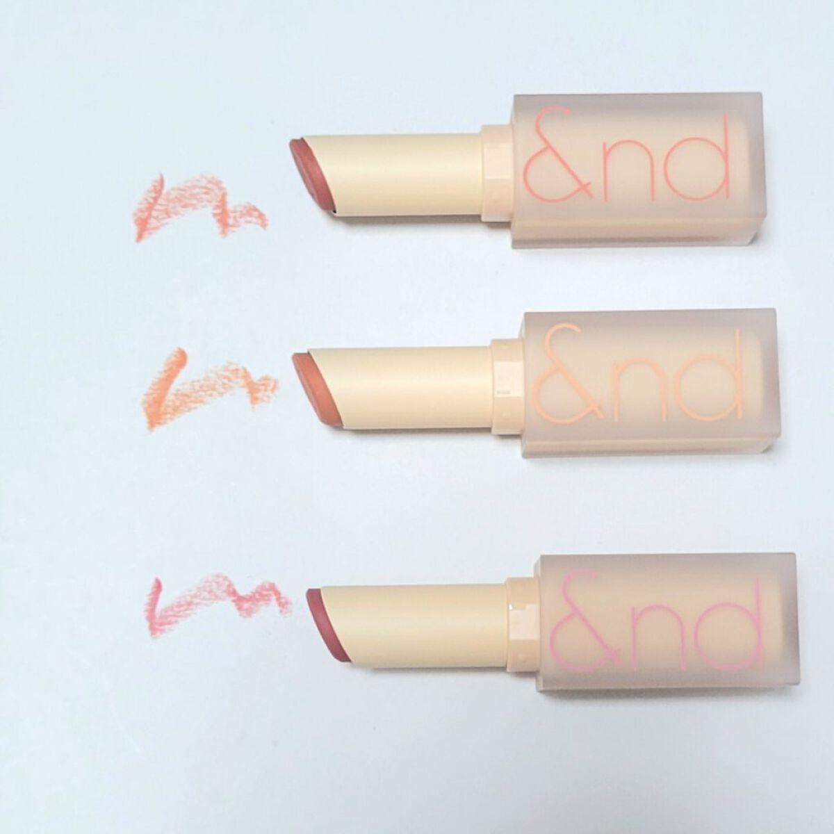 塗ってないような軽いテクスチャー ソフトでさらっと、マットリップ 本当にサラーっとした塗り心地 油分がある感じがなくてさらさら! カラーはとってもかわいくて肌なじみいいカラー ローズ系かなと思ったらピーチとかベージュ味もあってくすみ感もあってかわいいです♥