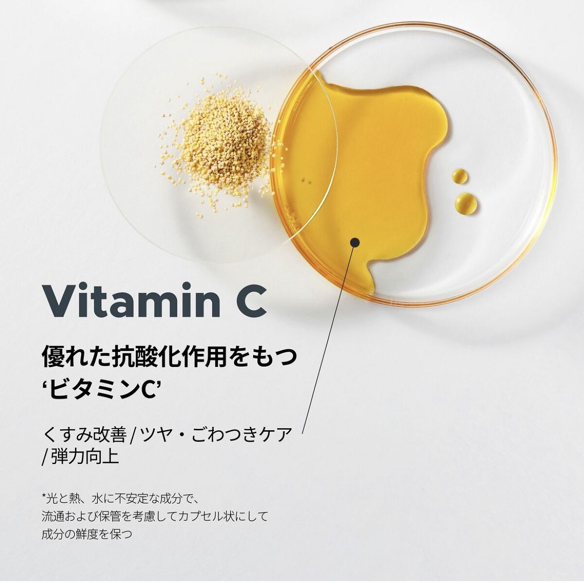 シルバーのボトルは、とってもオシャレ カプセルパートとセラムパートで分かれているのでふたを開け、カチッと音がするまでポンプを押し、最初に使用するときは、カプセルが溶けてセラムとよく混ざるように30秒以上、上下に振り、5分ほど立てておき、お肌になじませます。 ビタミンC+レチノールを実現したセラムはビタミンCカプセルとピュアレチノールの革新的な組み合わせで、毛穴や弾力などの肌の状態をケアし、健康的で美しい肌へと導くことができます。 やっぱり、別々に使ってたビタミンCとレチノールが一緒に使えるのはうれしい!