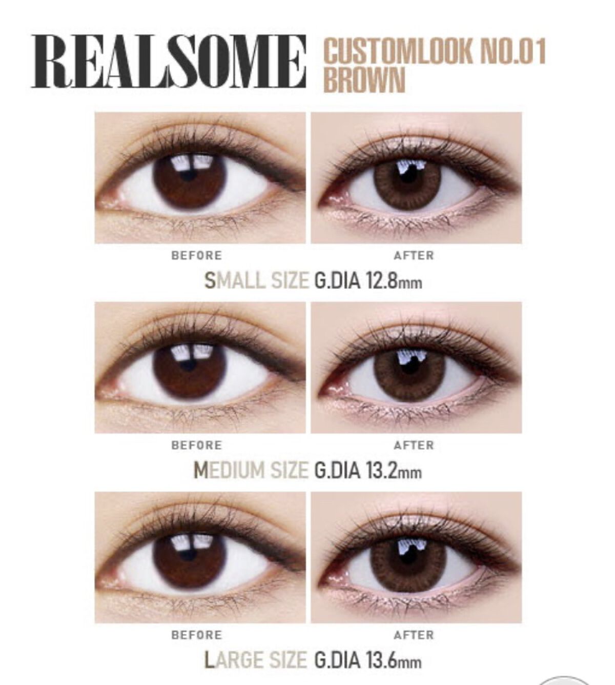このカラコンは着色直径がS(12.8mm)、M(13.2mm)、L(13.6mm)の3サイズあって、今回からはLサイズを購入しました。 ナチュラルとありますが茶目の私には結構発色が良く、ベージュみが強く出るカラコンでした。 ふちがぼかしてあり、細めなので13.6mmでも少し小さめに感じました。 黒目さんはナチュラルに瞳を明るくできるのではないかなと思います。 6か月用・乱視用なのでワンデーに比べて厚みはありますが、かえって着脱がし易くて助かります。