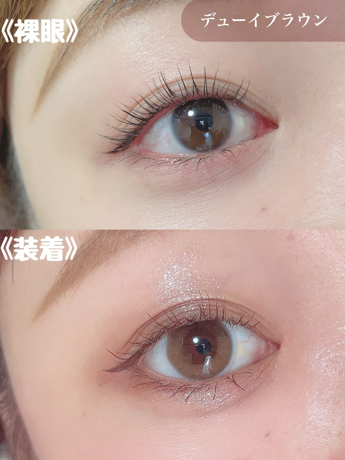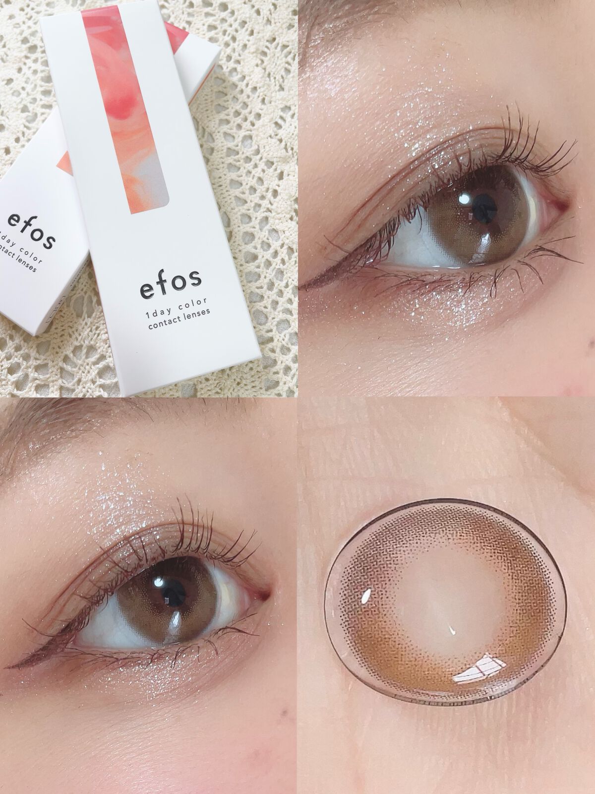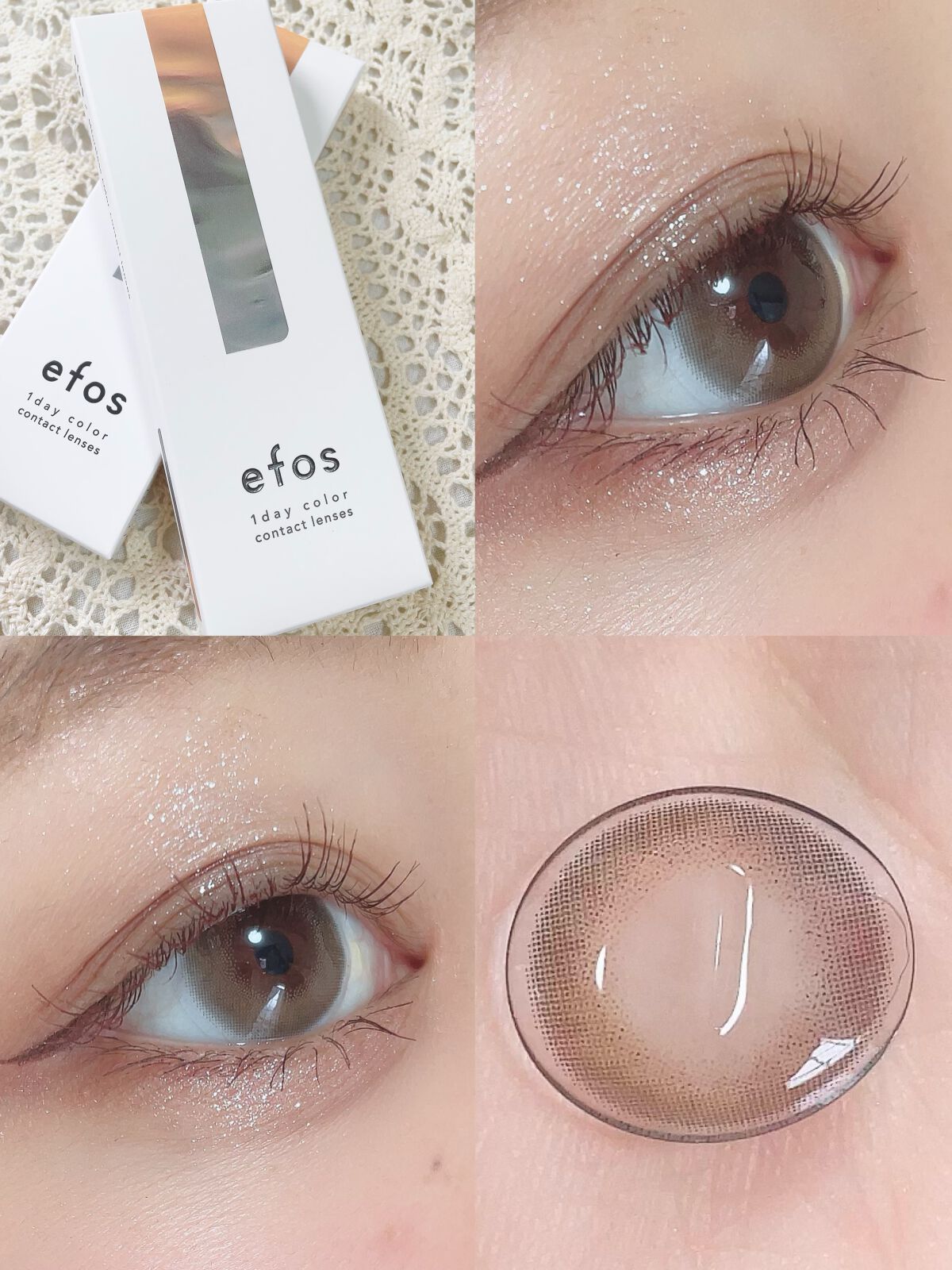 南りほちゃんイメモのカラコンefos。今回は既存カラーのレビュー💜 これは虹彩部分がベージュ系で外側がモーヴカラーになってる珍しいデザイン。 efosはモアコンで販売しています🫶