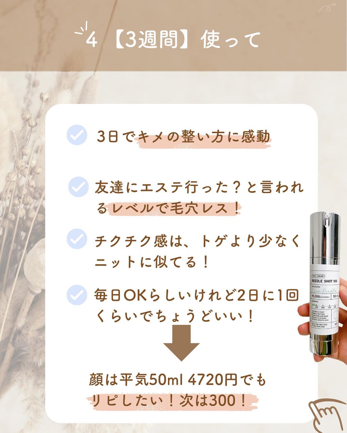 VT リードルショット100 50ml 4720円 針の量で100・300・700 公式サイトでは同ブランドのコラーゲンとレチノール製品との併用をおすすめしていました!持ってるので使ってみましたが感動致しました。
