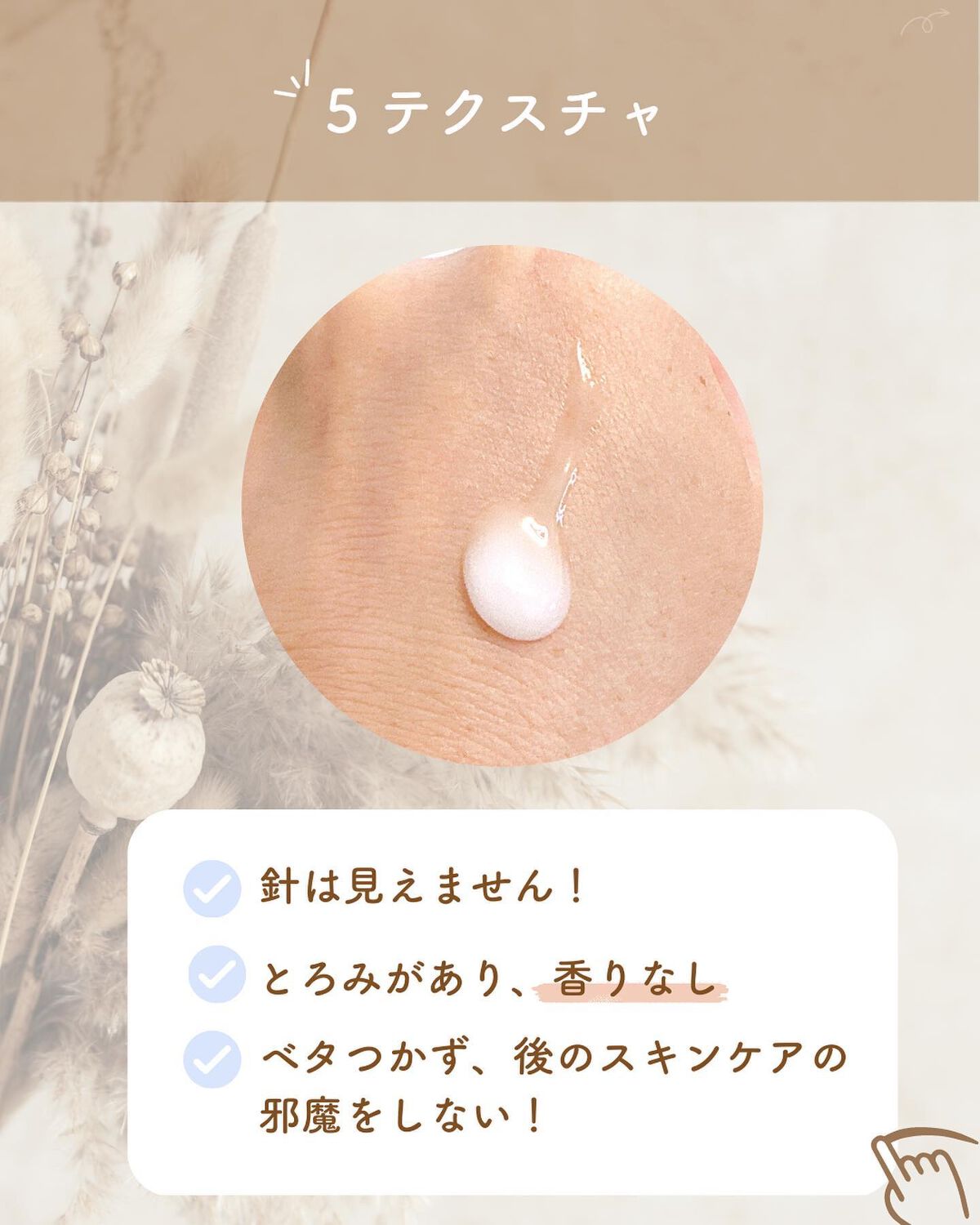 | スルスルっと伸びて、肌になじむとほんのりツヤ感を感じます。 後肌はさらり。 | 詳細を見る | ||