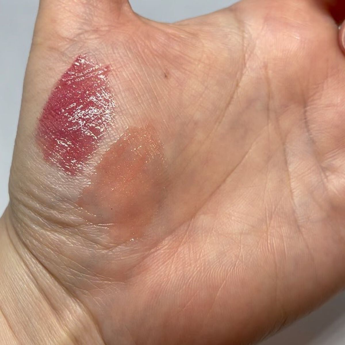 魔法薬が入ったようなころんとしたデザイン💜 小さいので持ち運びしやすい☺️ 80%以上水分保湿成分で出来ていて水滴を落としたような透明感のある光沢感🚿 ビタミンEや唇自体の保湿機能を活性化させるフサザキスイセン根エキスなどが配合されているため、みずみずしくてエッセンスをつけているみたいなのに不思議と保湿効果が続きます。