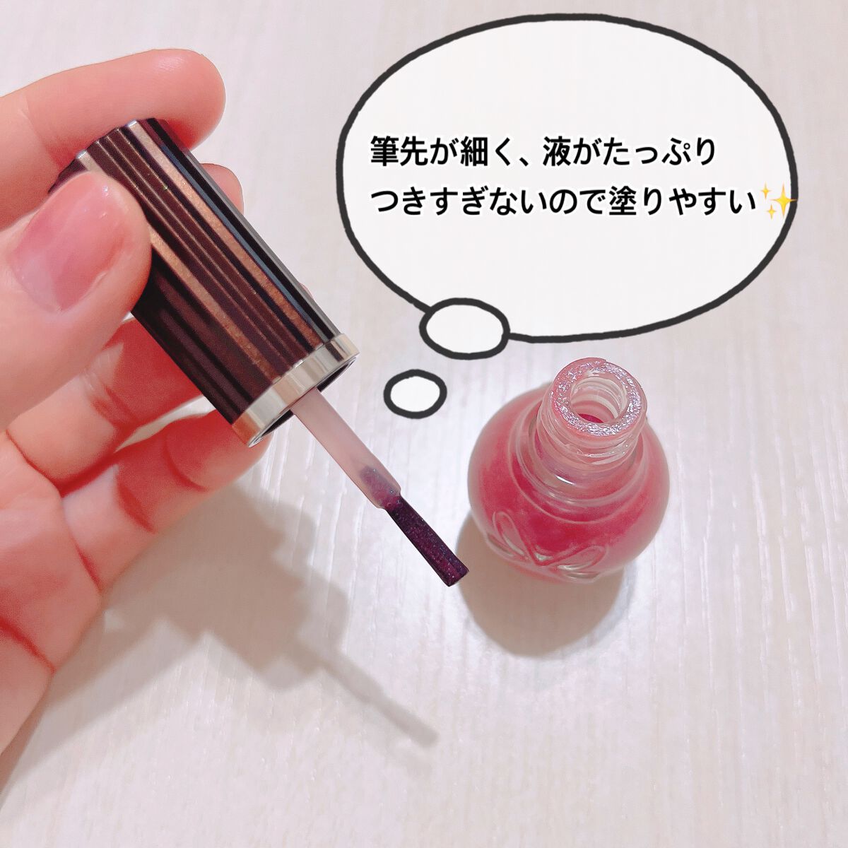 | みずみずしい感じのネイルなので、さっと綺麗に塗ることが出来ます。 | 詳細を見る | ||