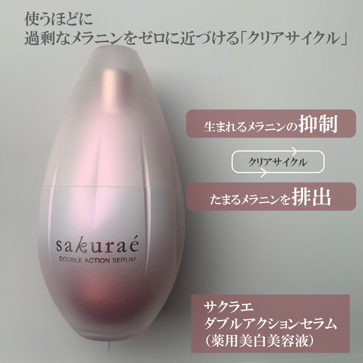 .サクラエ ダブルアクションセラム.大塚製薬から誕生した薬用美白美容液.ᐟ.ᐟ気になっていて購入してみましたꉂ☻ᵎᵎᵎ.大塚製薬のダブルのシミ対策*1美容液𓈒𓂂𓏸1本でメラニンを抑制*2・排出*3する日本初*4のダブル美白*5美容液𓍯.なめら...